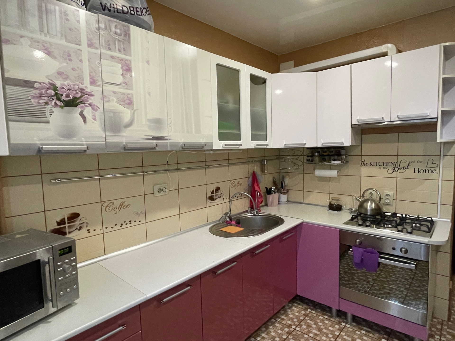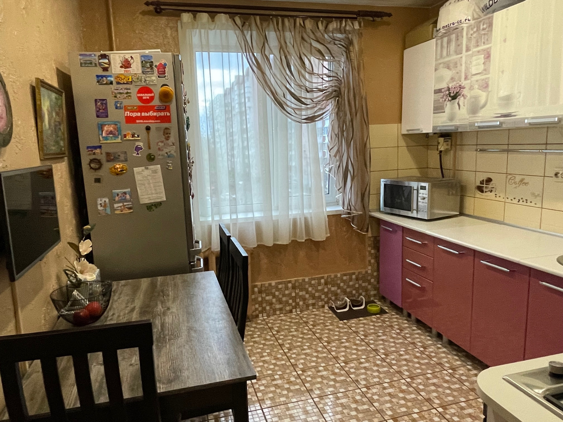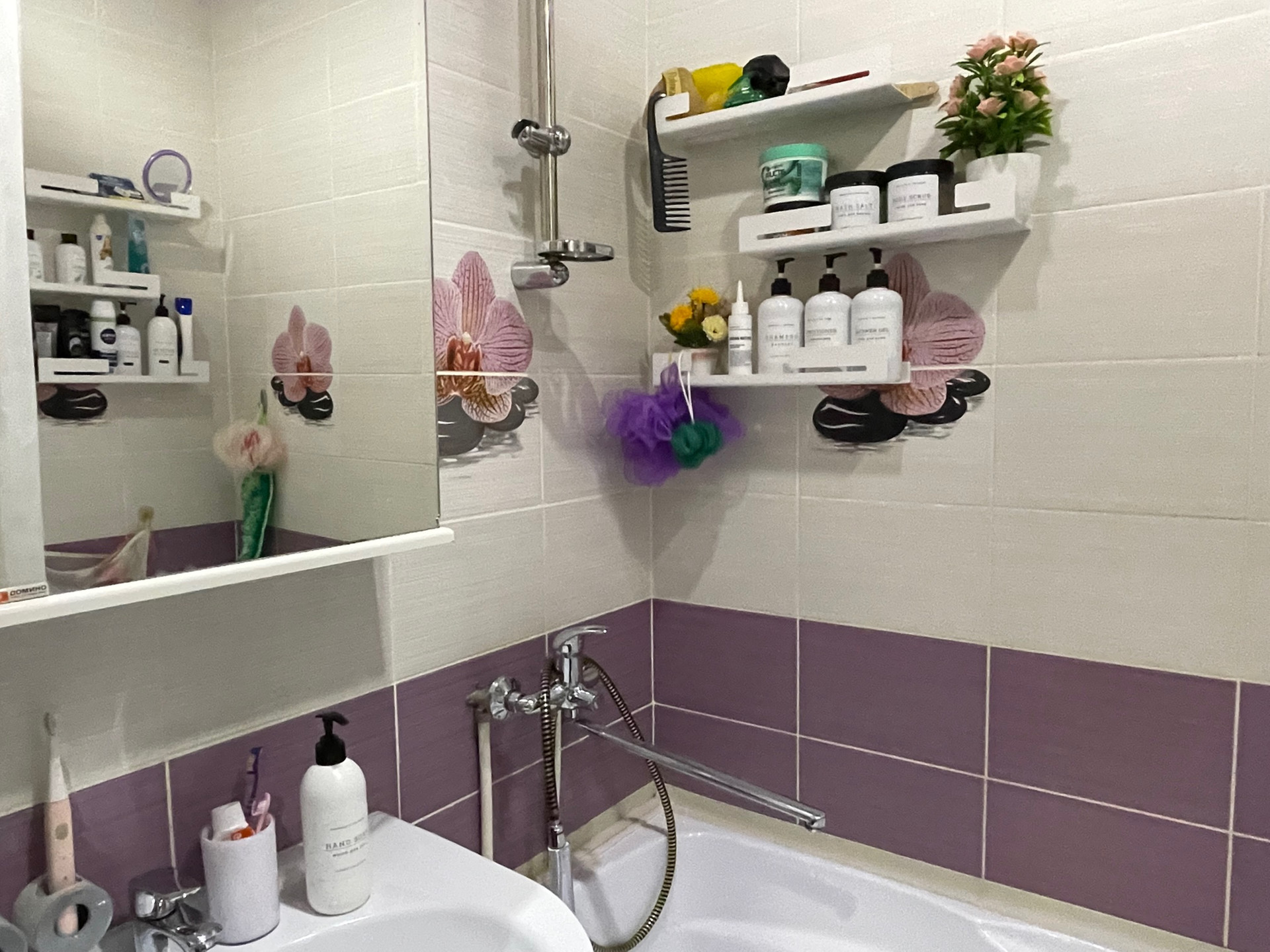 Остается в квартире: кухонный гарнитур, варочная газовая панель, навесной шкаф в туалете, зеркальный шкаф в ванной.