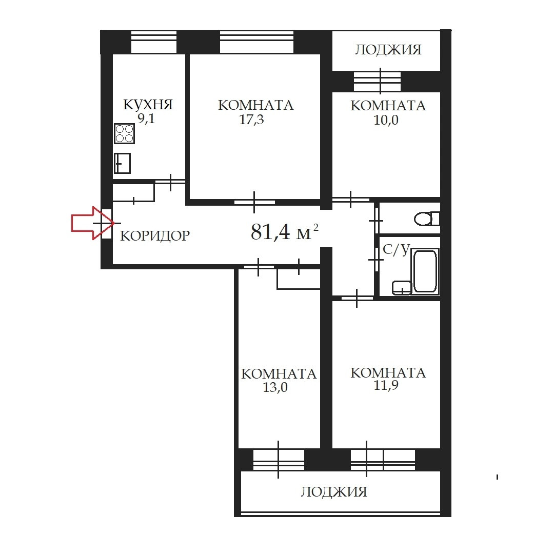 - Изолированные комнаты 17,13,12,10 кв.м.;