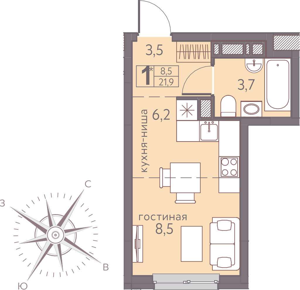 Общая площадь 22 м2