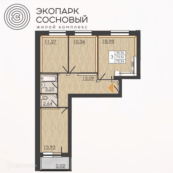 Удобная квартира 75,54 кв.м.в доме со сдачей в 2 кв. 2023 г. - убирает все лишнее и оставляет больше места именно для жизни!