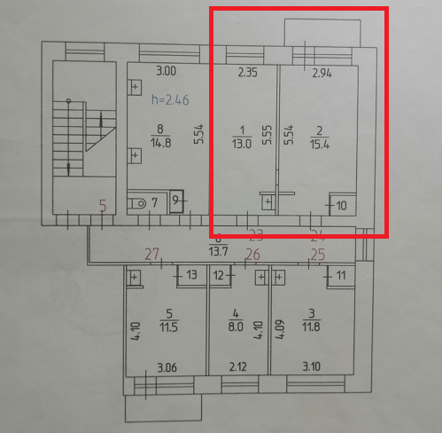 Высота потолков 2.5 м