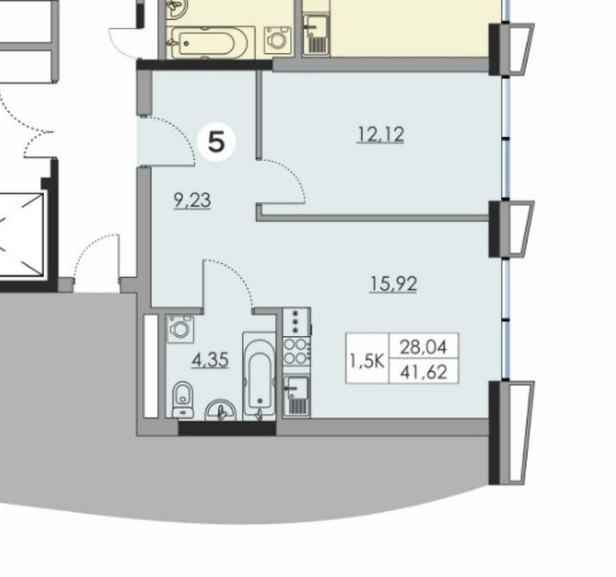 Общая площадь 41.6 м2