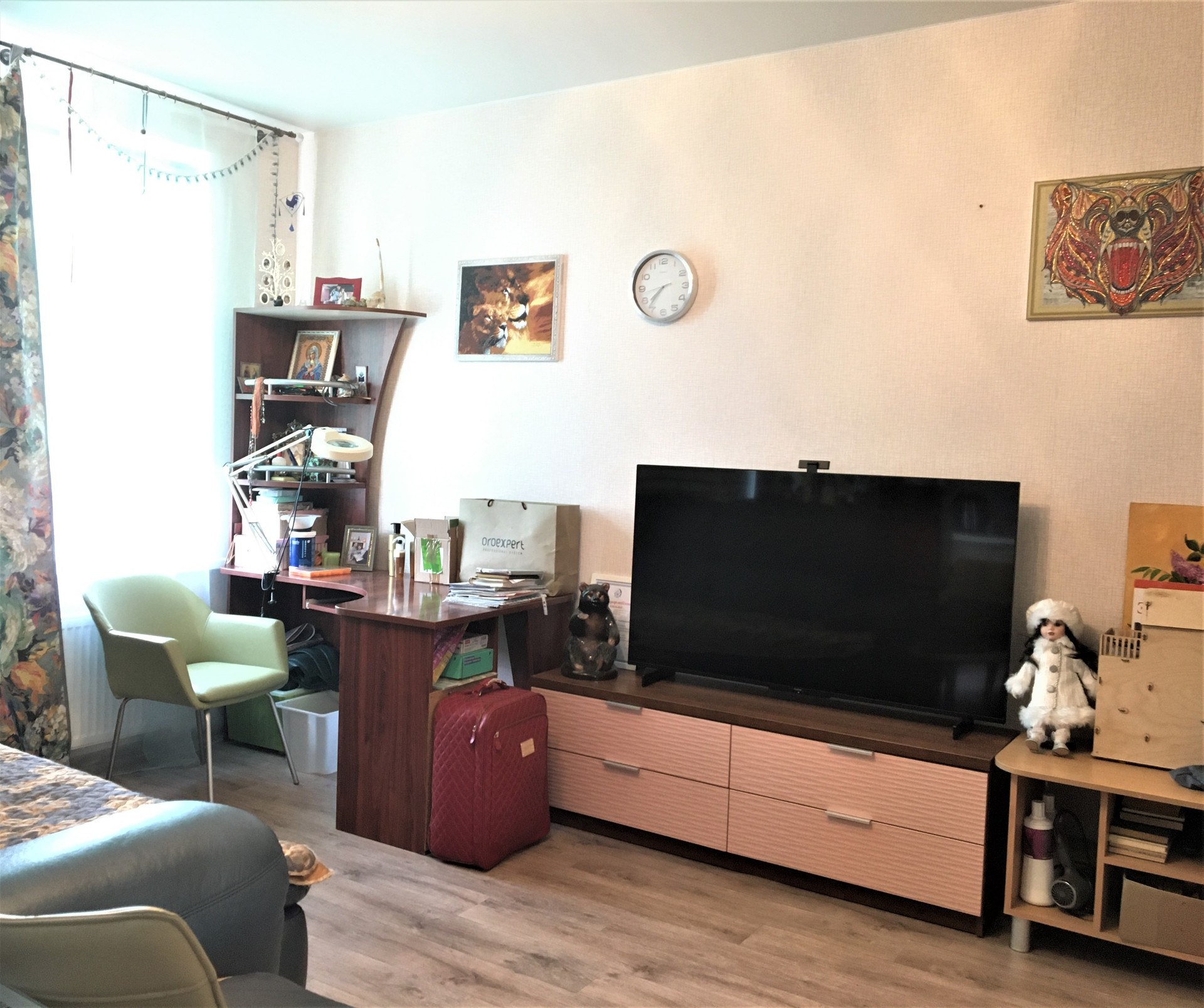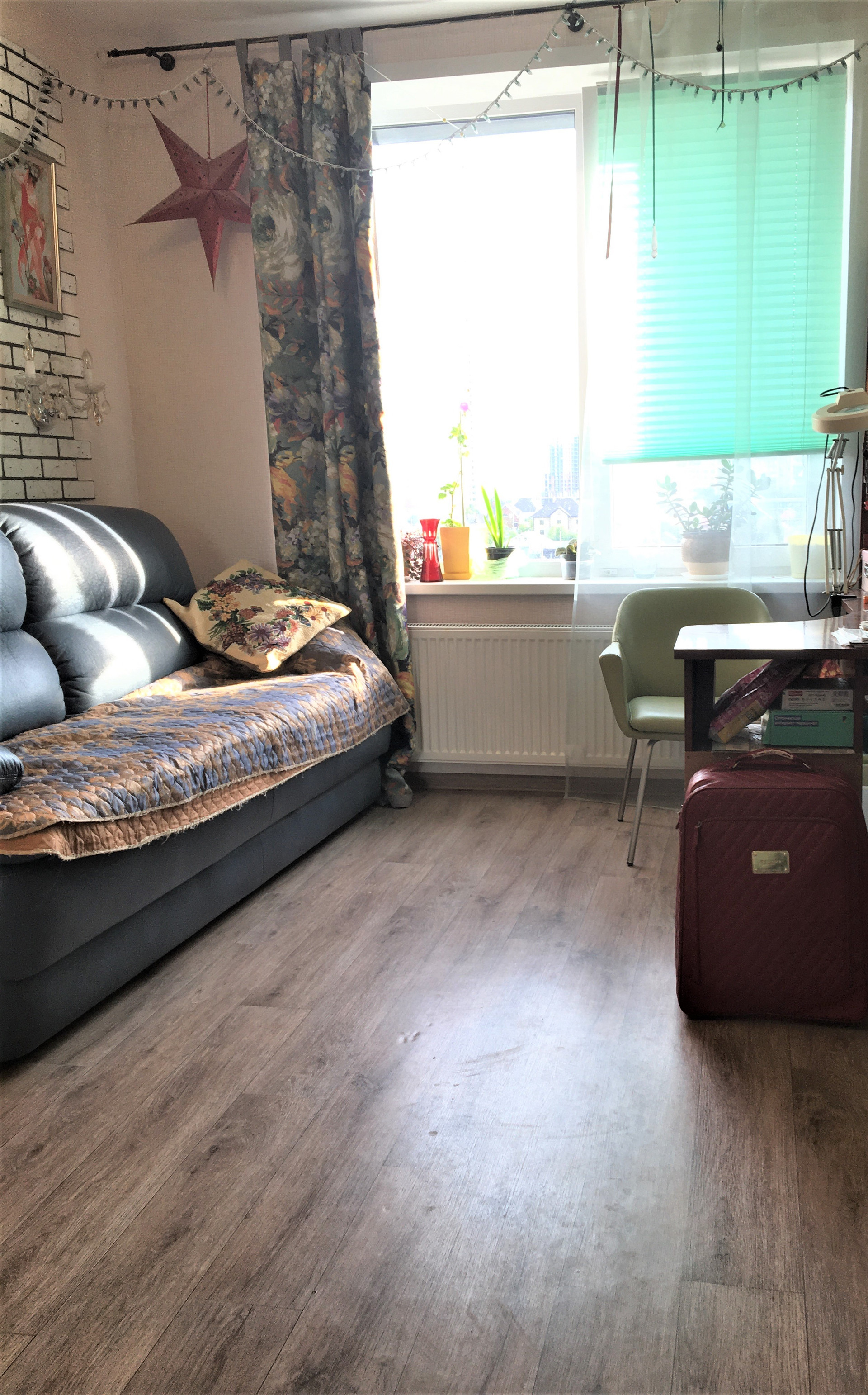 Квартира с качественным ремонтом, натяжной потолок, обои светлых оттенков, на полу линолеум,  в санузле  плитка.  Установлены стеклопакеты. Качественная  входная дверь.