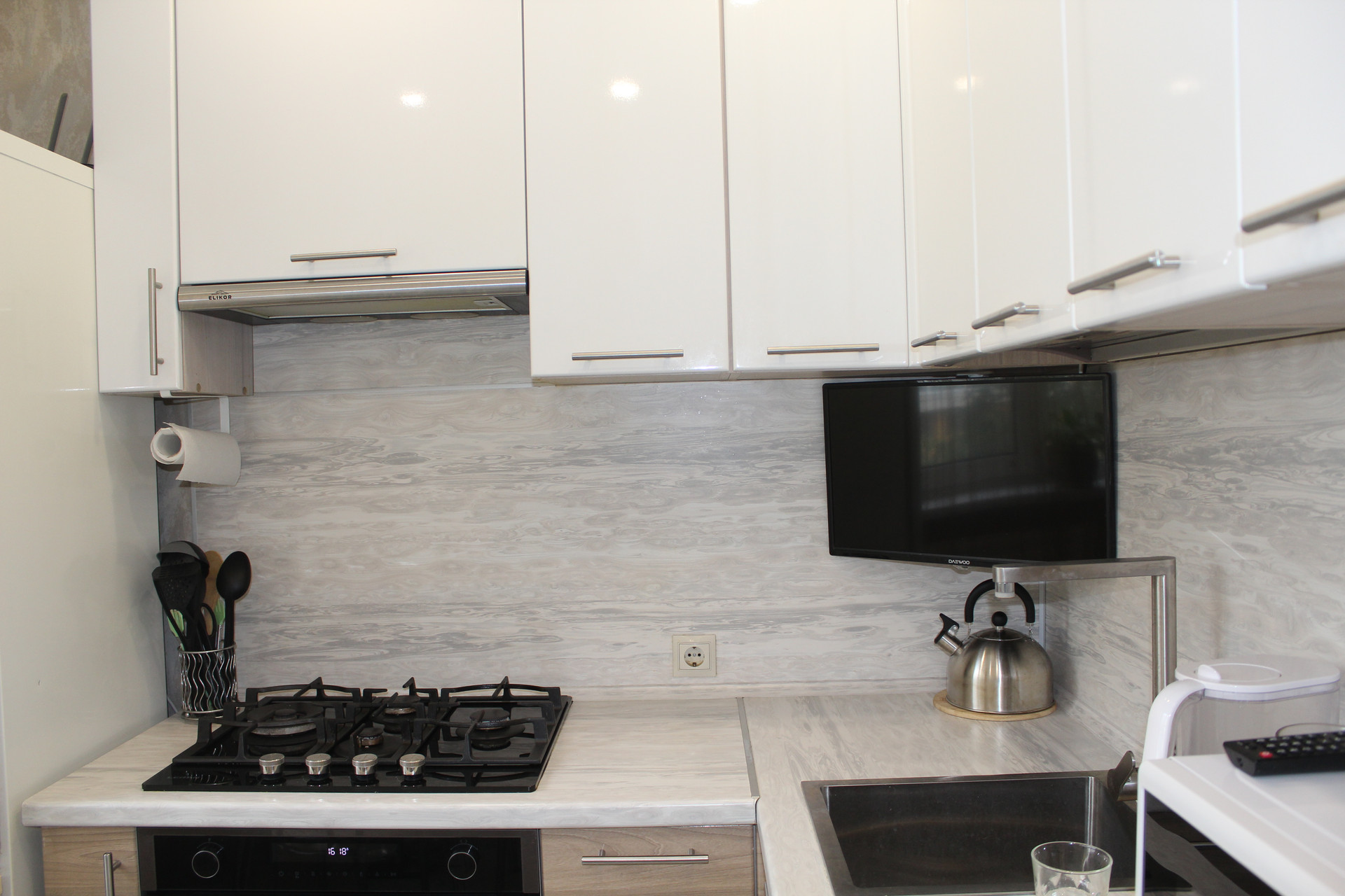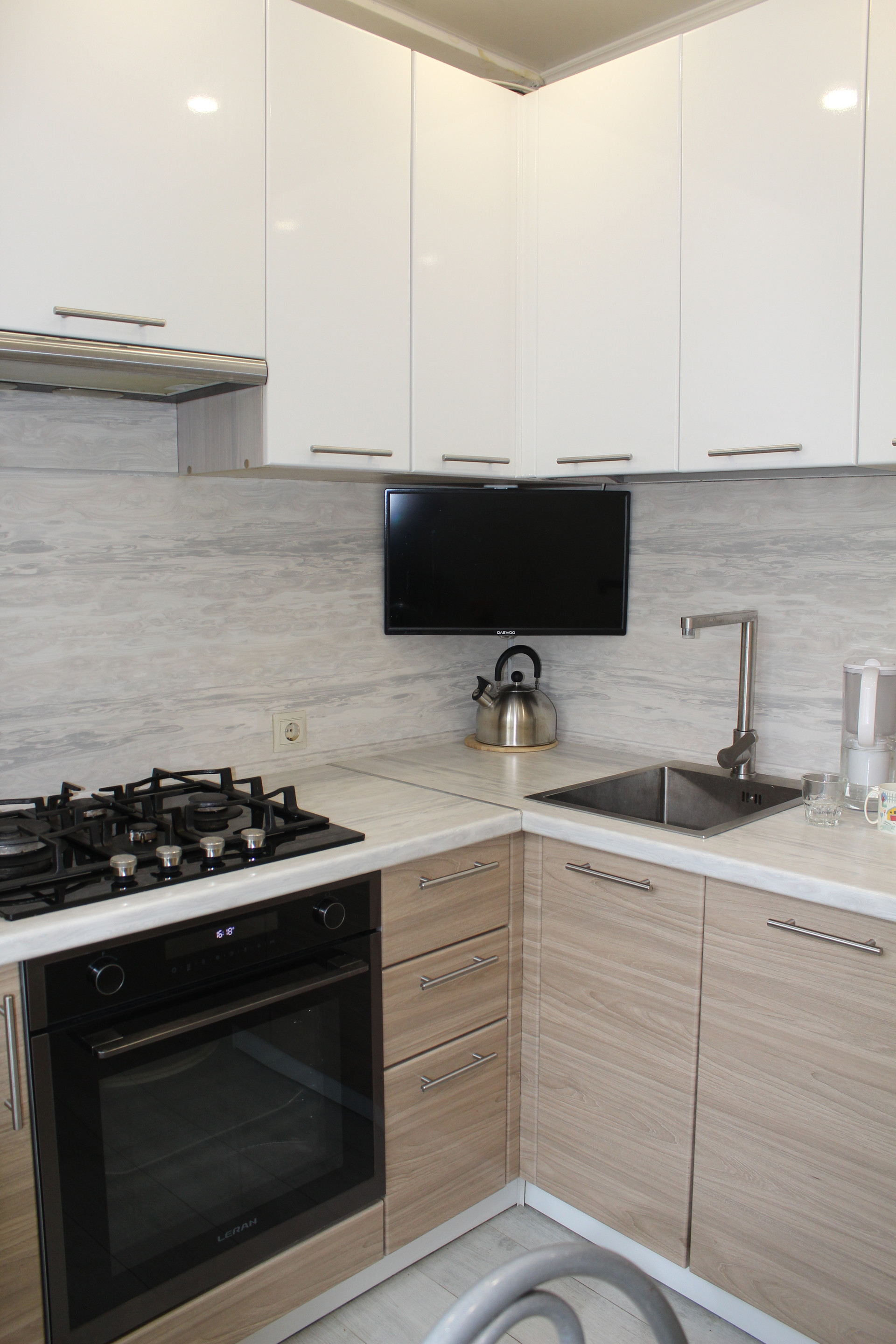 Квартира не требует дополнительных вложений, заезжай и живи, оставляем встроенный кухонный гарнитур, встроенную технику, холодильник.