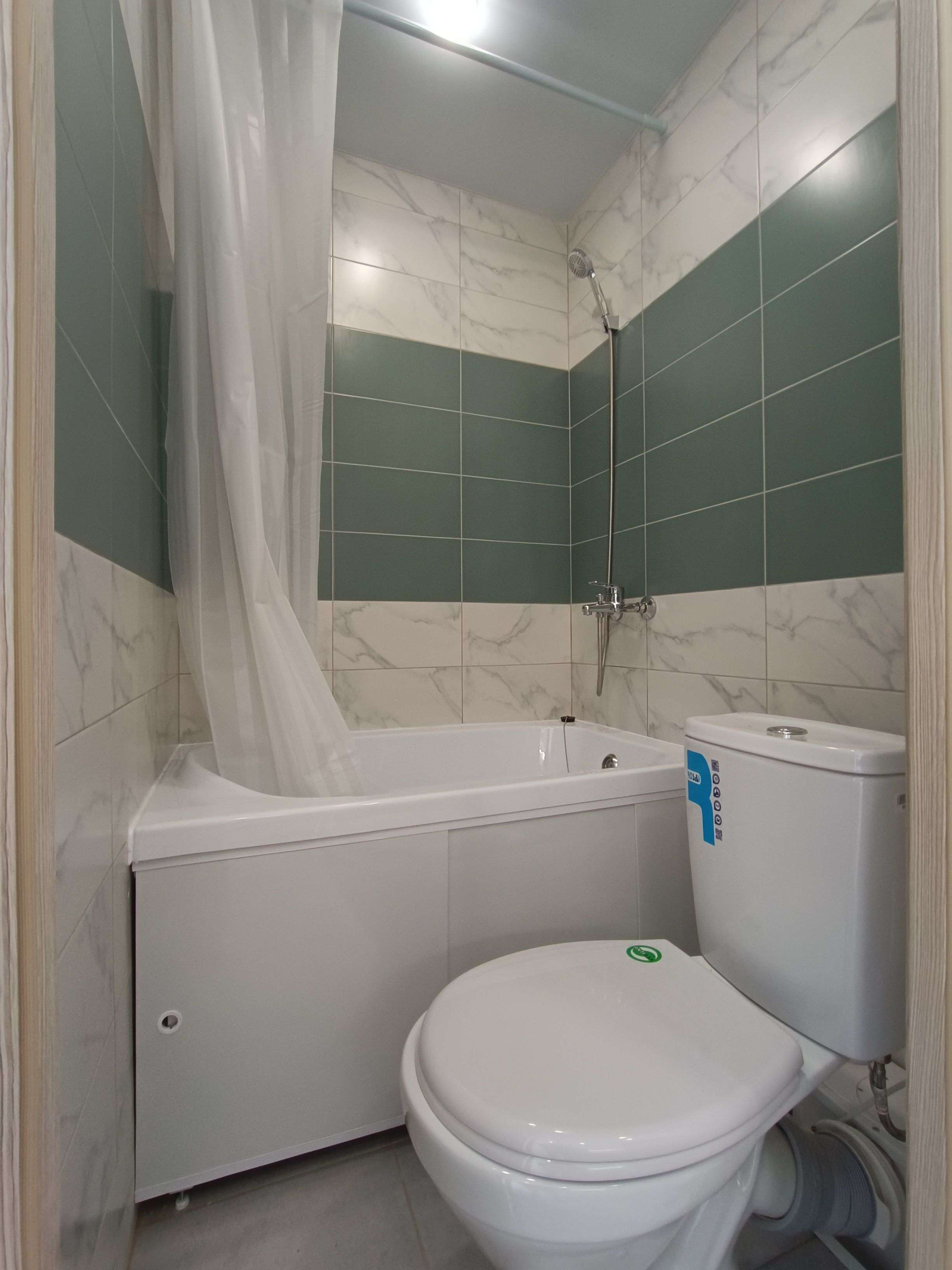 Санузел отделан кафелем.