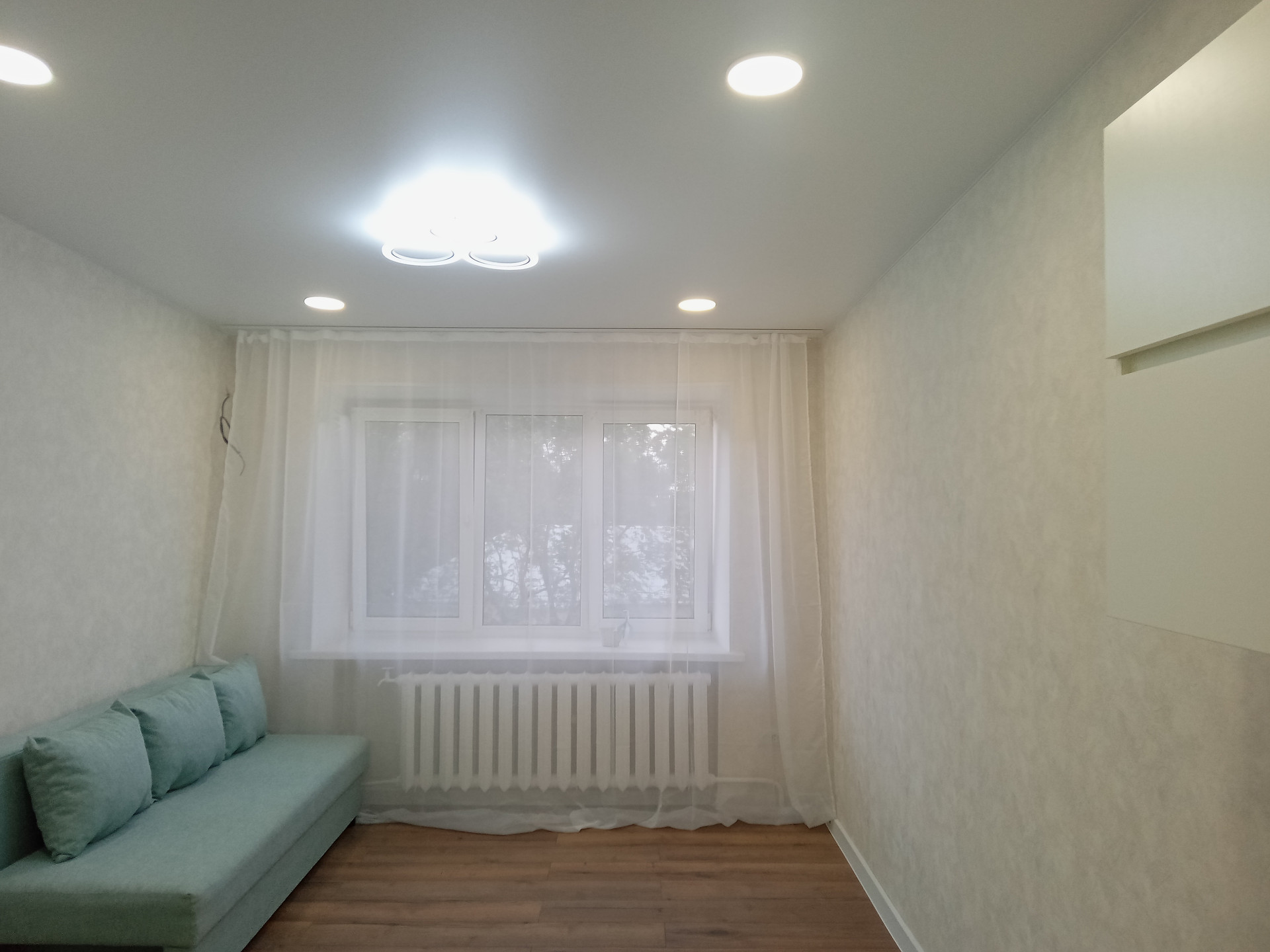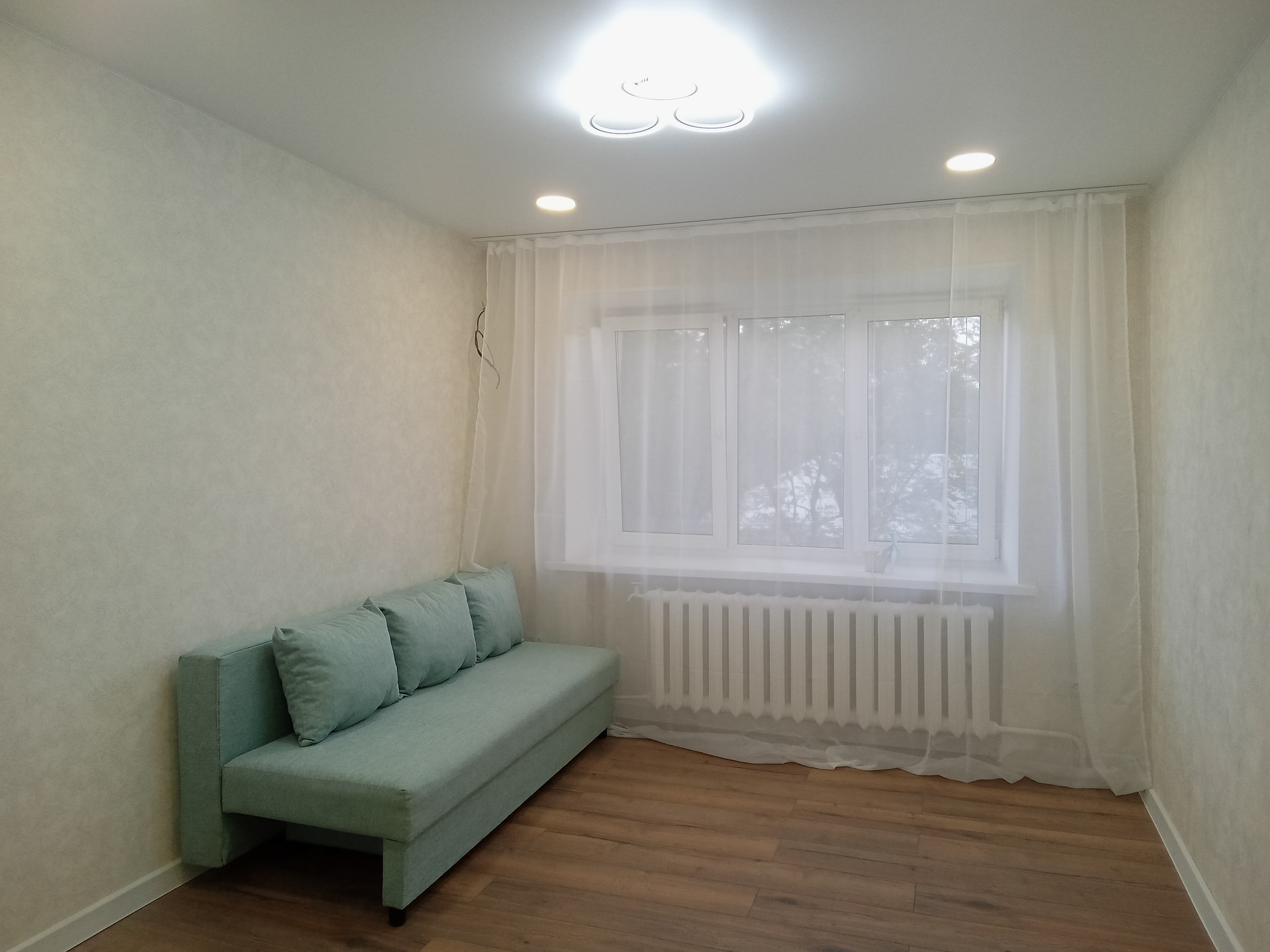 3 Просторная комната с удобным диваном, и кухней нишей.