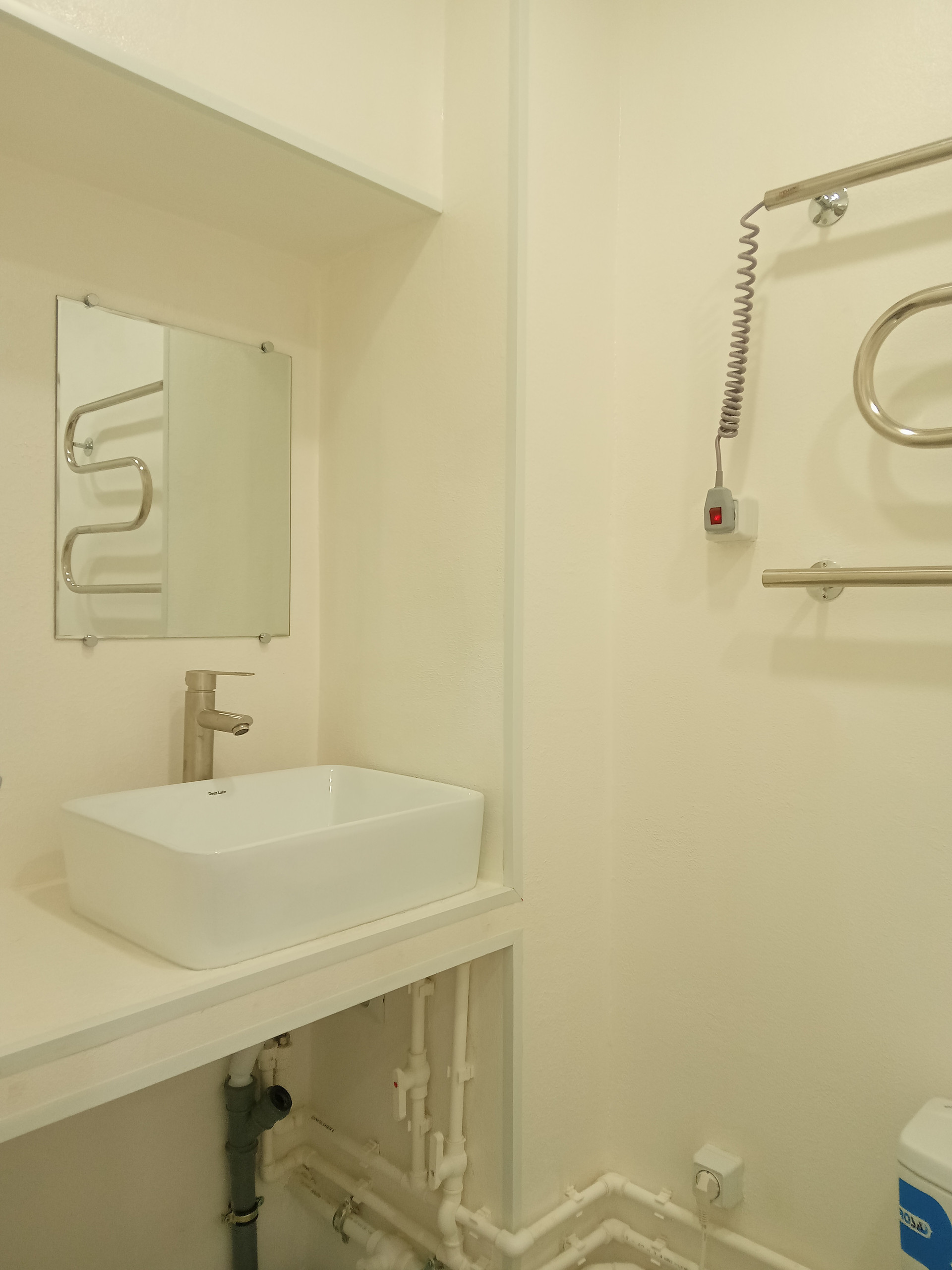 2 Санузла с тёплым полом, ванной, унитазом, стильной раковиной, местом для стиральной машины