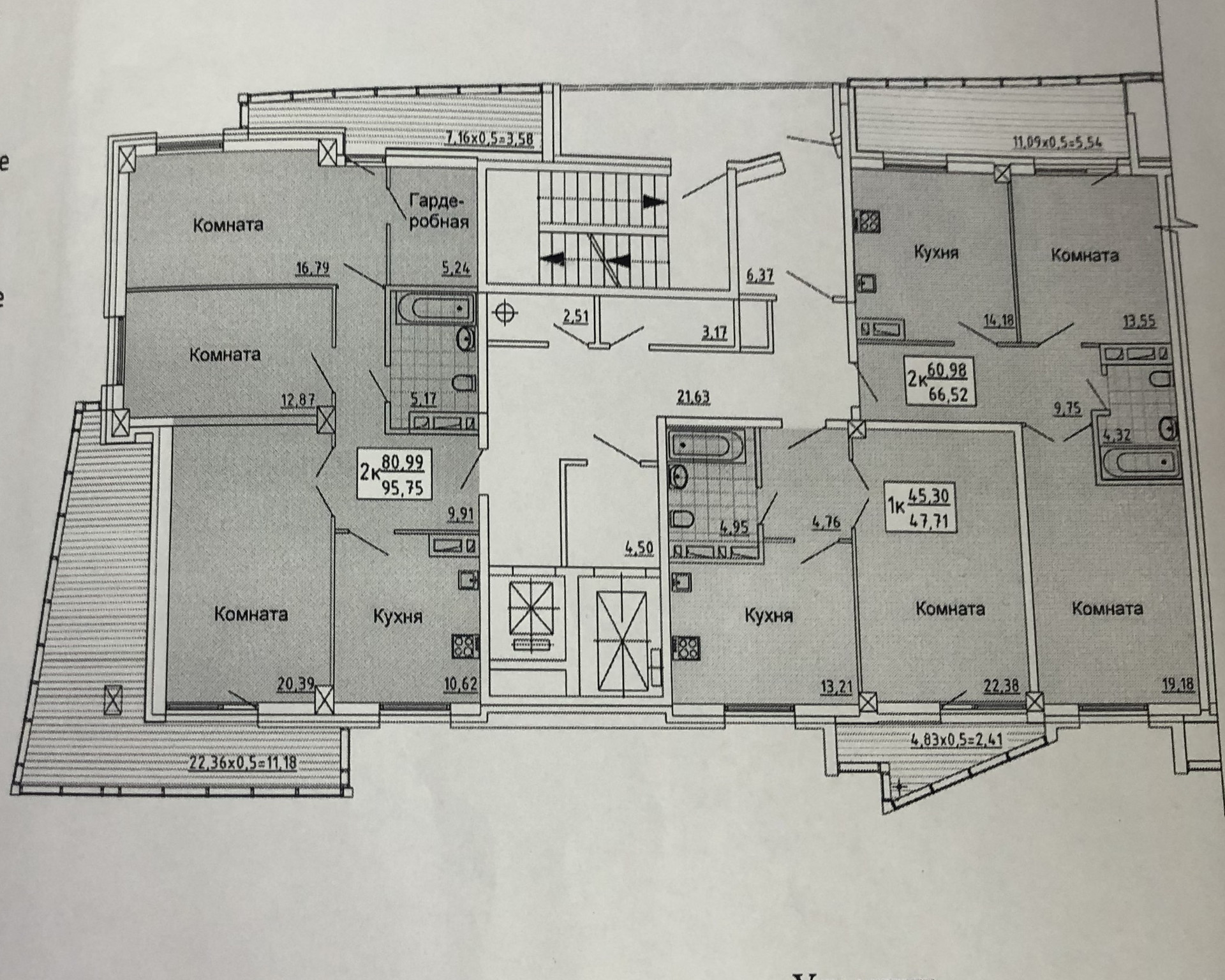 Общая площадь 60.98 м2