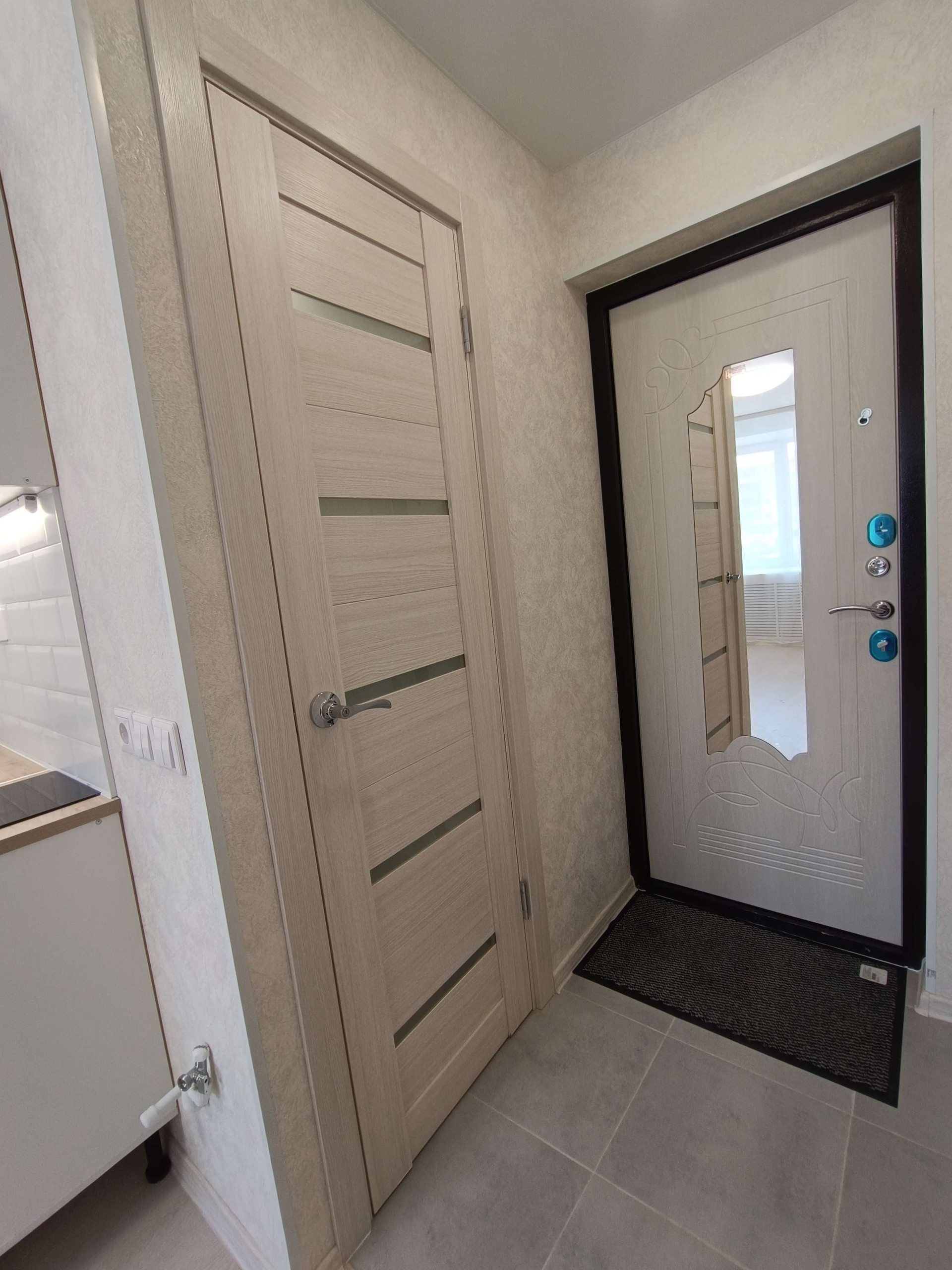 Будет заменена проводка, стеклопакеты, натяжной потолок, ламинат, коммуникации, проведена вытяжка, установлена надёжная, металлическая входная дверь с зеркалом в полный рост.