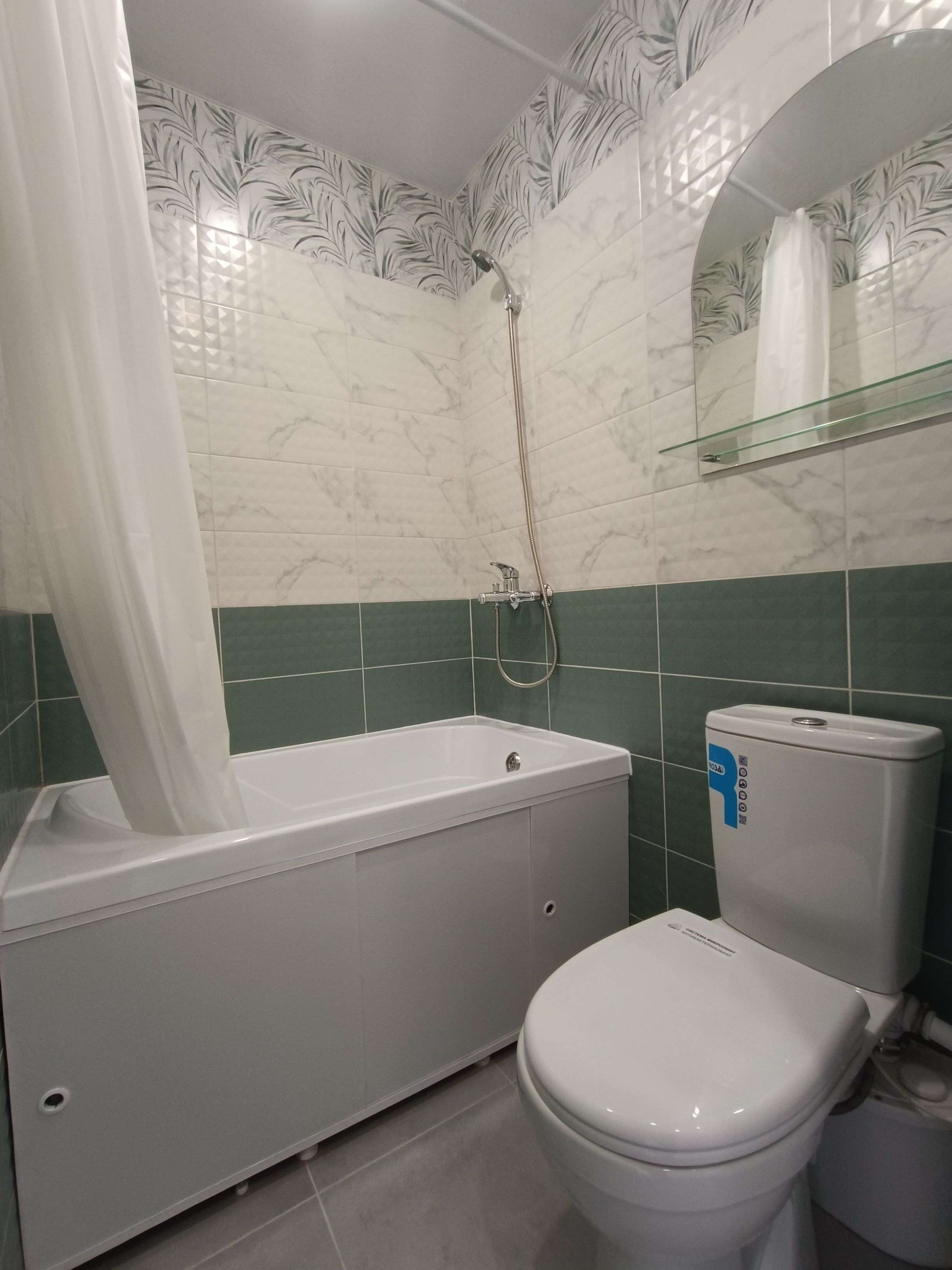 Санузел отделан кафелем.