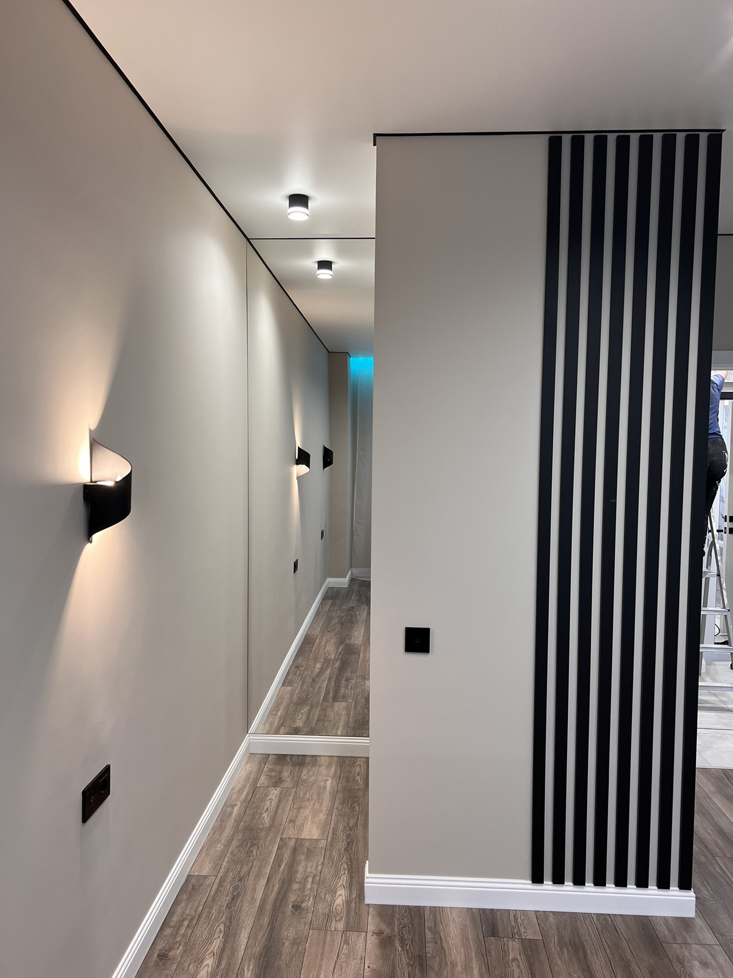 В квартире выполнен стильный ремонт с современными дорогими материалами.