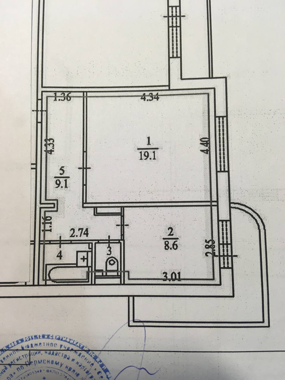 Жилая площадь 19.1 м2