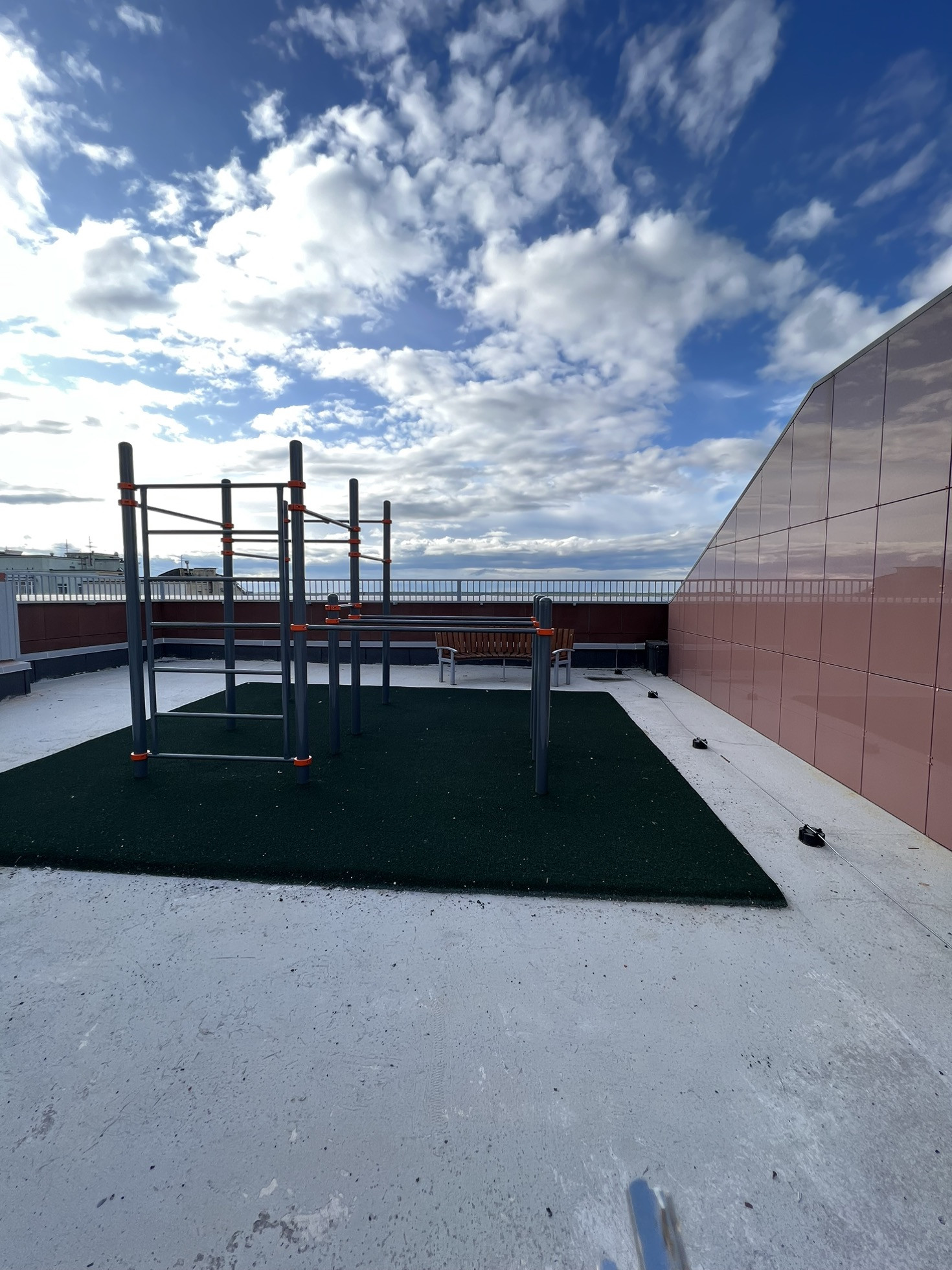 На крыше обустроена зона отдыха.