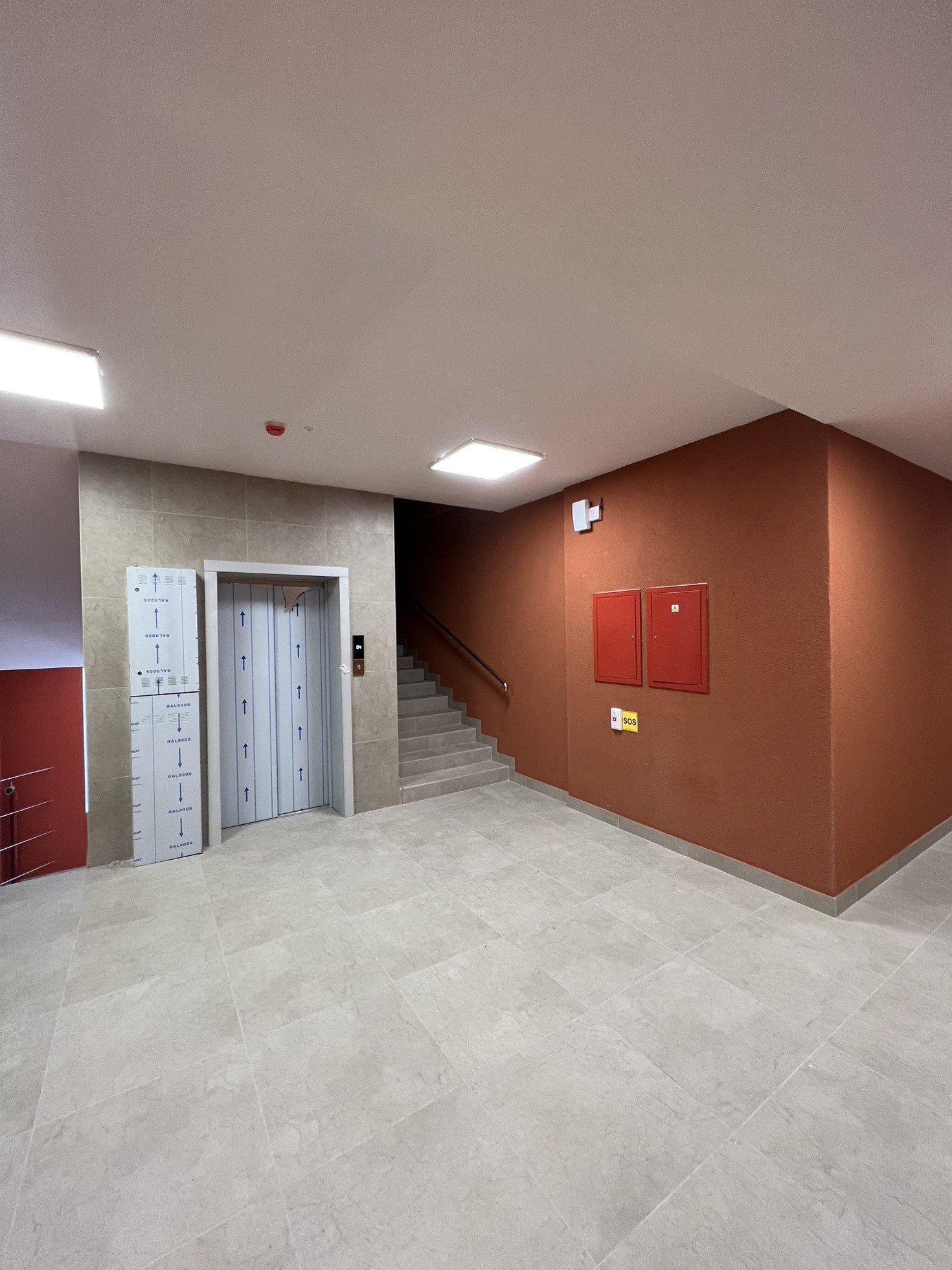 Доступ в подземный паркинг прямо из подъезда на лифте.