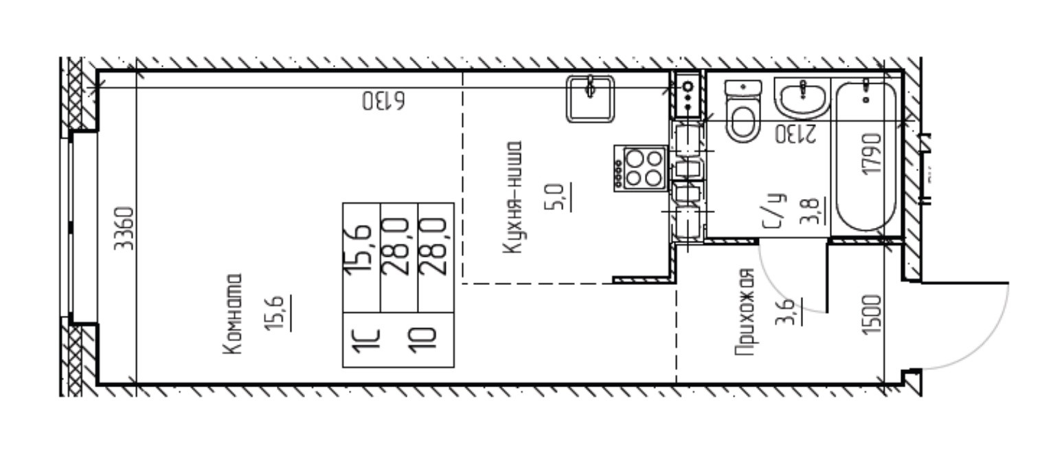 Общая площадь 28.2 м2