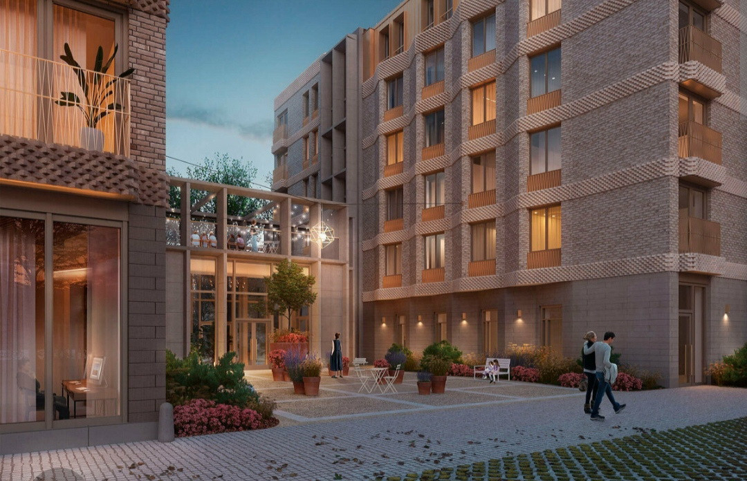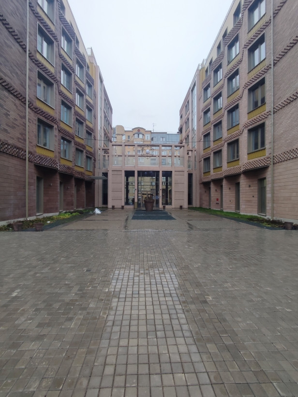 Архитектура дома формирует уютный тихий двор, скрытый от любопытных взглядов. На внутренней огороженной территории размещена небольшая игровая площадка для детей.