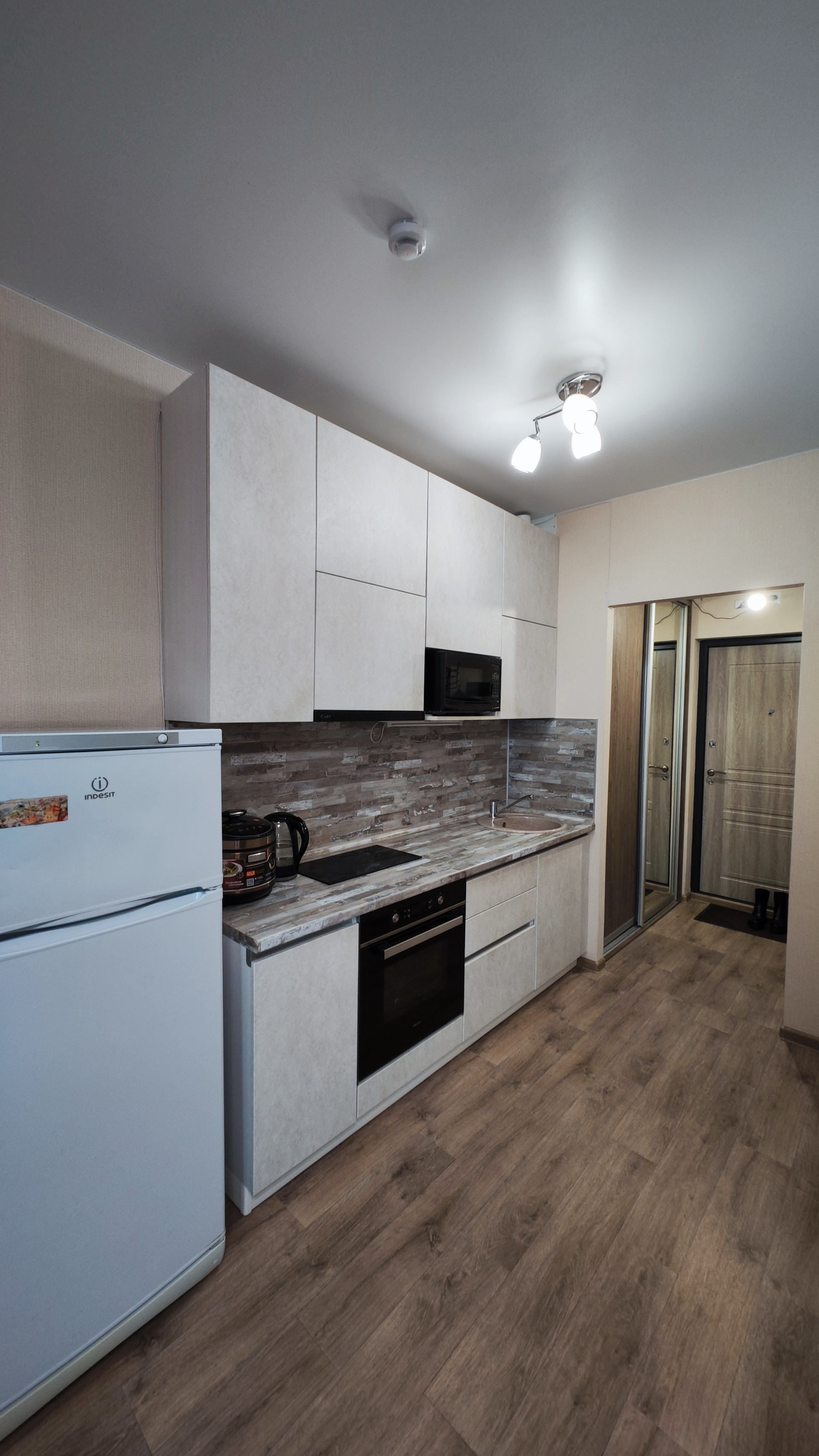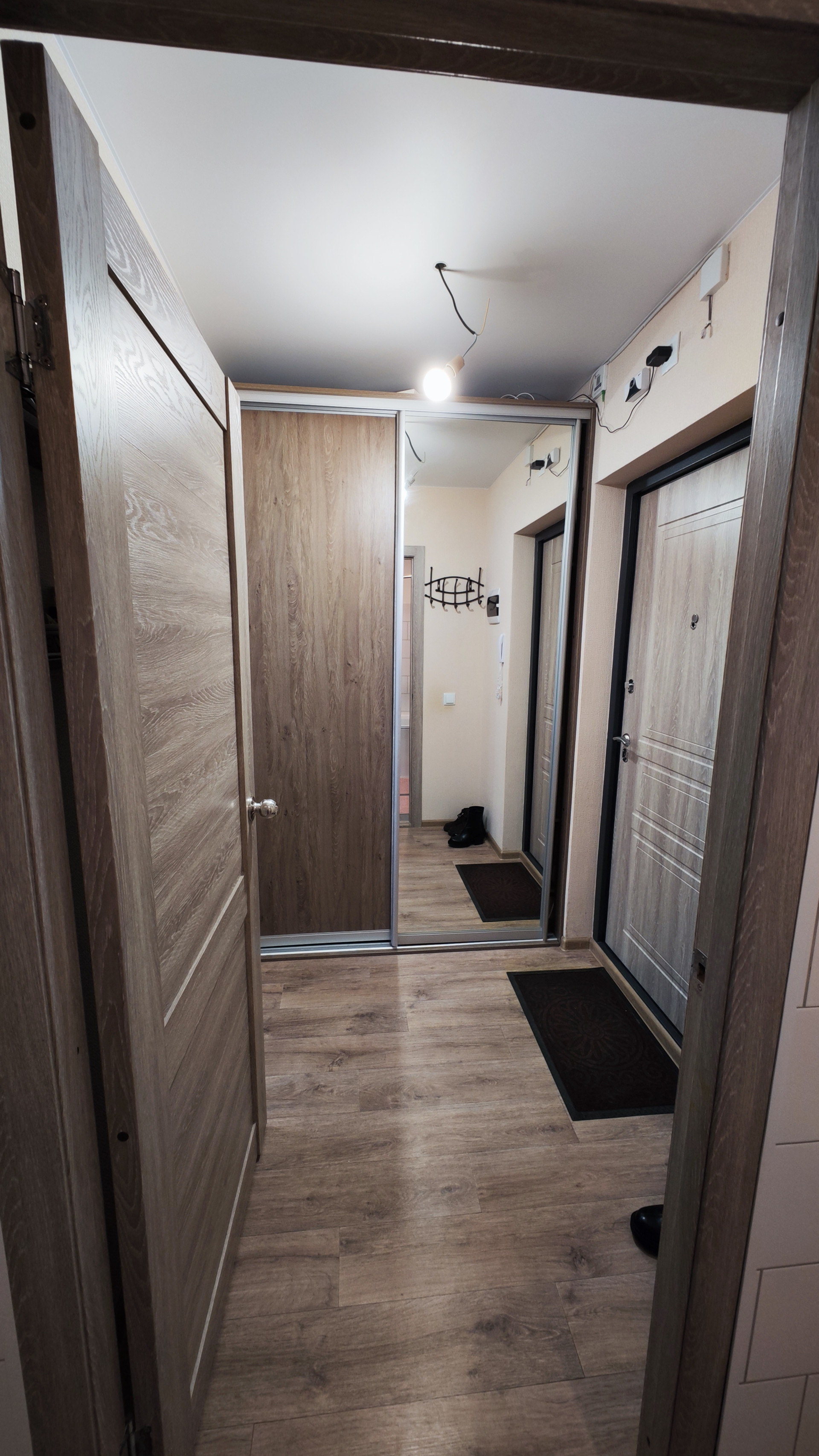 Качественный ремонт от застройщика. Металлопластиковые окна увеличенной ширины 1,8 метра с детскими замками и клапанами на проветривание. Металлическая входная дверь-сейф. На полу линолеум 32 класс, на стенах виниловые обои нейтральных оттенков, натяжные потолки. Квартира очень светлая и теплая.