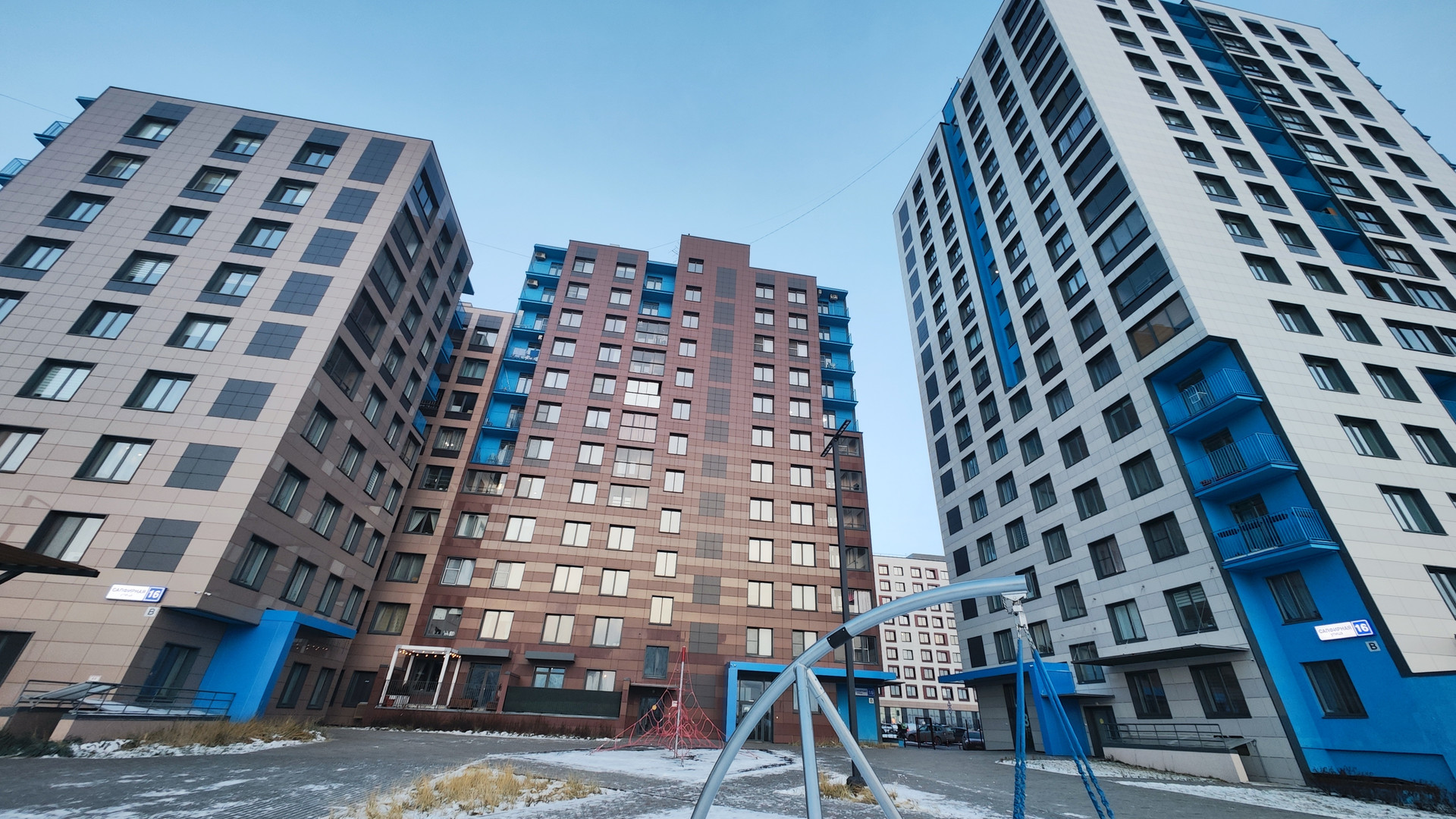 пpоcторная студия в ЖK "Пoгoдa - тёплые квартaлы" по адресу Сапфирная 16, 1 подъезд. Зacтpойщик «Девелопмент-Юг». Дом сдан в 2020 году.