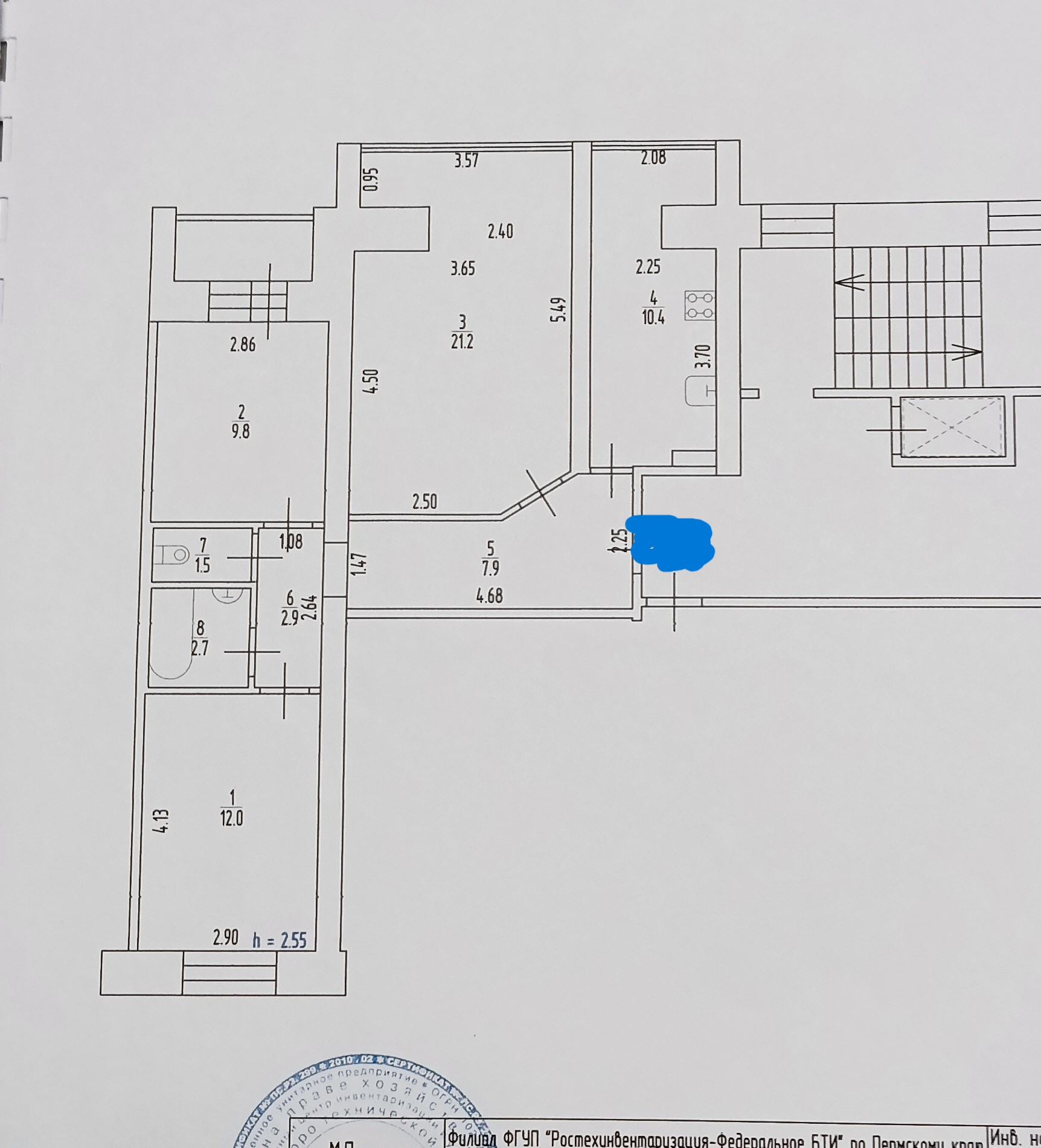 Высота потолков 2.55 м