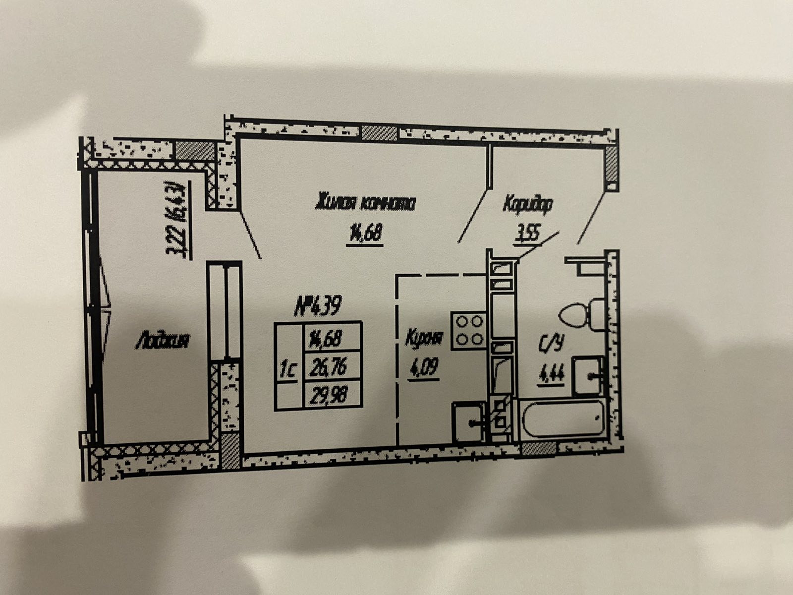 Общая площадь 26.9 м2