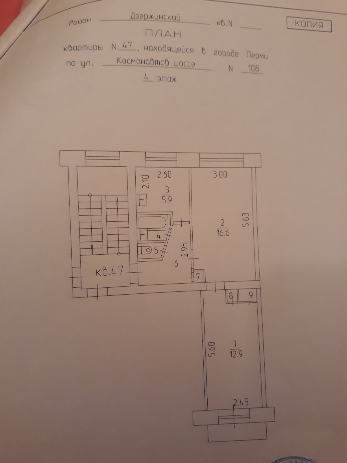 Общая площадь 44.5 м2