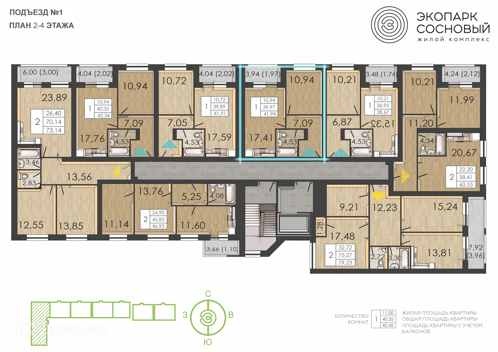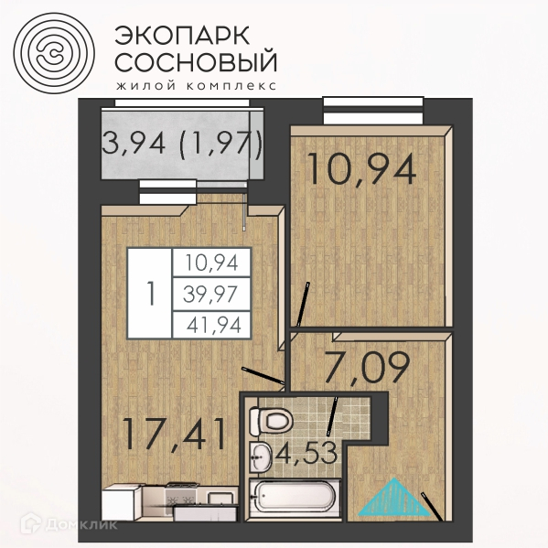 Удобная и эргономичная классическая 1-комнатная квартира 41,94 кв.м., в доме со сдачей во 2 квартале 2024г. - убирает все лишнее и оставляет больше места именно для жизни!