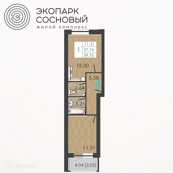 Удобная и эргономичная квартира 39,76 кв.м. в доме со сдачей в 2 кв. 2024 г. - убирает все лишнее и оставляет больше места именно для жизни!