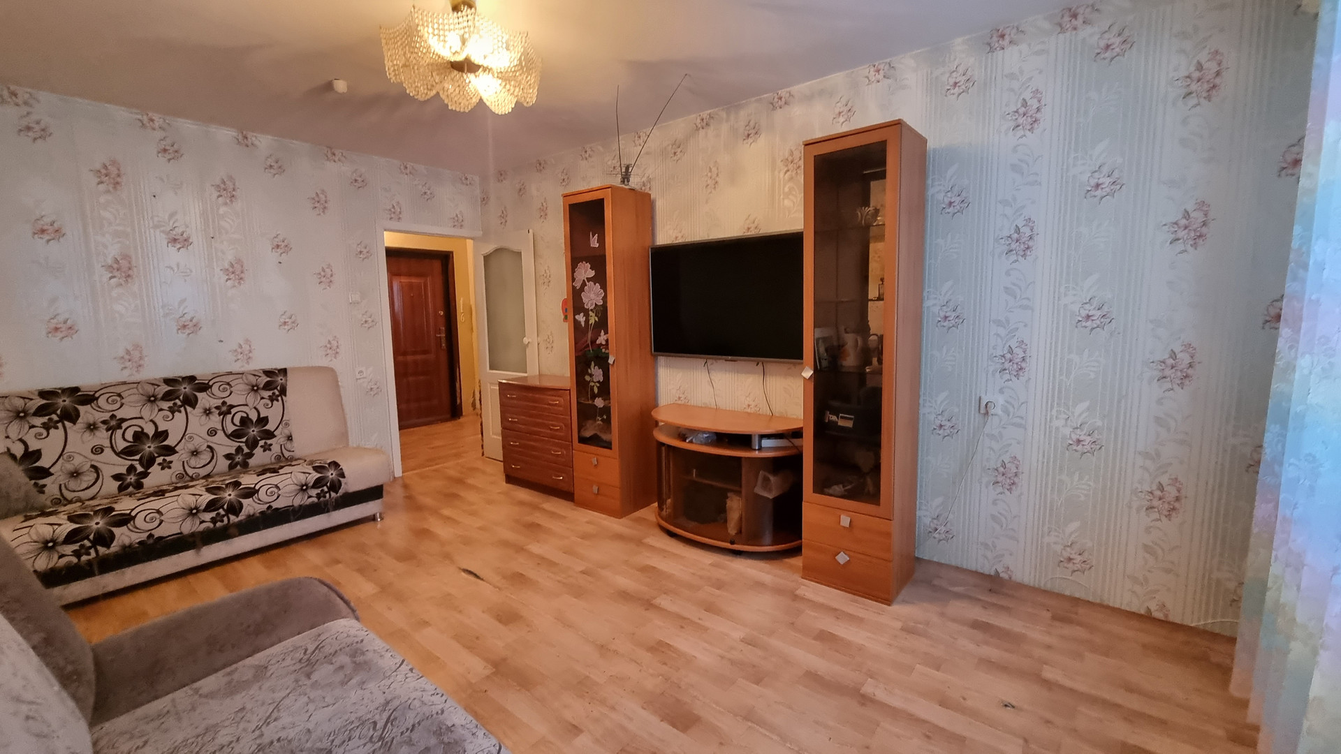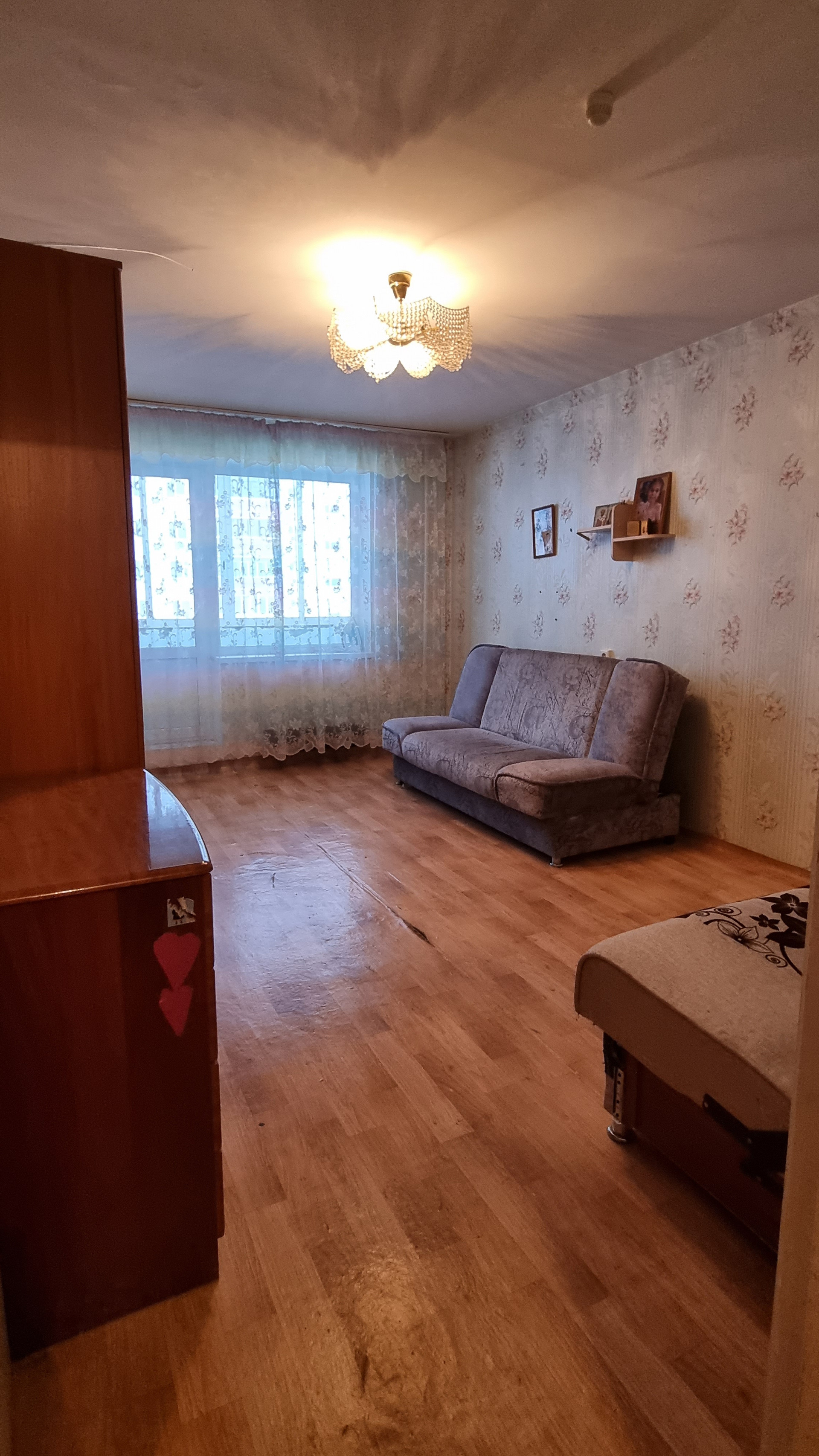 Квартира тёплая и светлая. На окнах установлены стеклопакеты, окна квартиры выходят на солнечную сторону. Тамбур на 2 квартиры. БОЛЬШАЯ ЛОДЖИЯ 7 кв.м., застеклена. Состояние квартиры простое, требует ремонта.