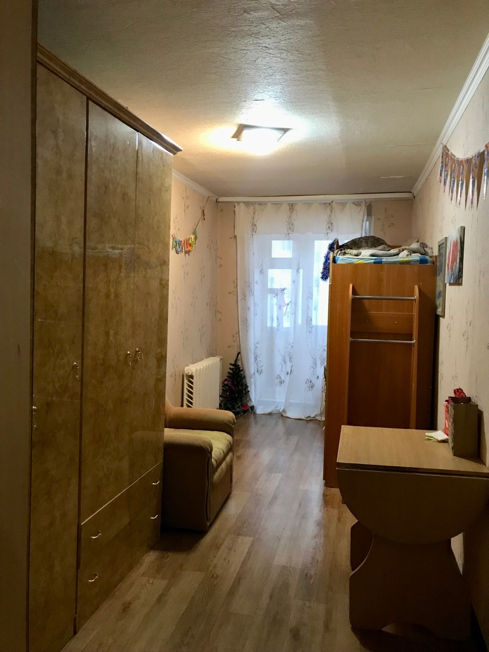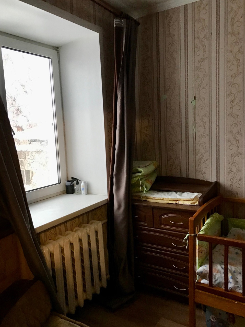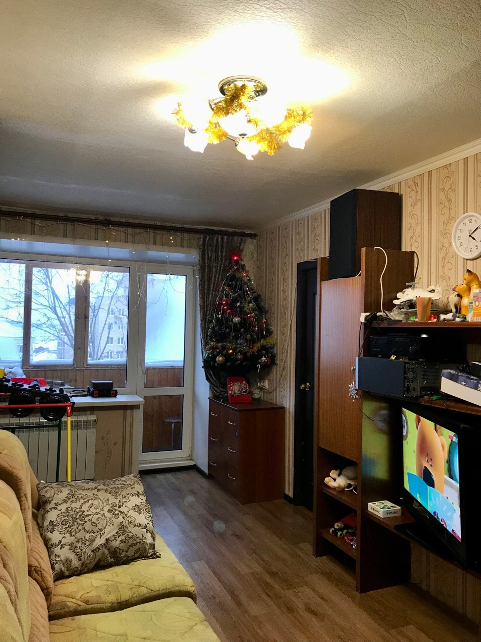 Состояние квартиры скромное, но чистое. Установлены стеклопакеты, полностью заменены трубы на пластиковые, счетчики на воду установили в прошлом году. Пол линолеум, частично поменяны батареи, межкомнатные двери и входные двери современного типа. В ванне плитка, в туалете пластиковые панели - все чистое и исправное. На кухне оставим шкафчики от кухонного гарнитура. В квартиру можно заехать и жить делая ремонт постепенно. А можно вынести все имеющееся и сделать для себя современную квартиру с большой кухне-гостиной и двумя спальнями.