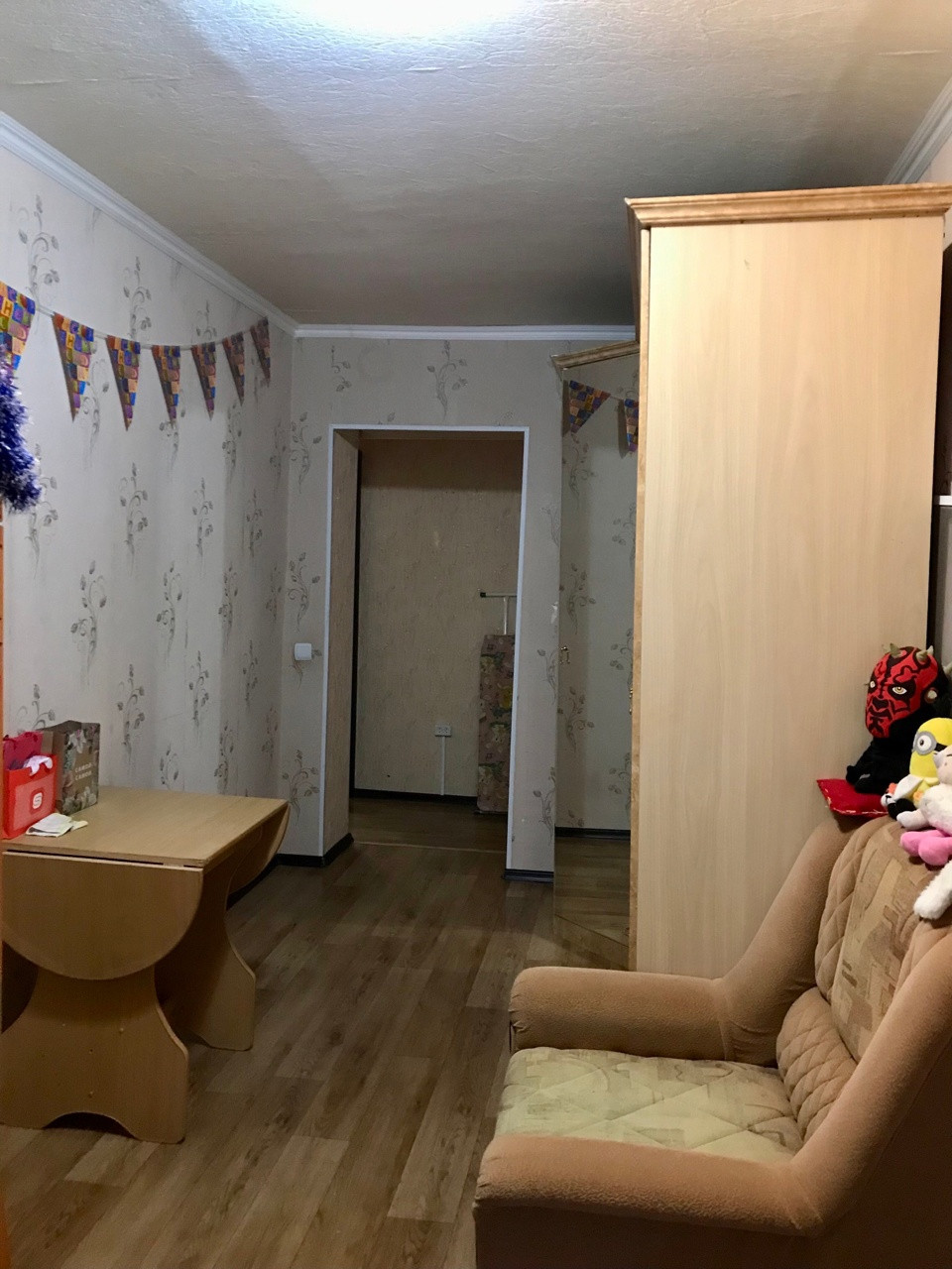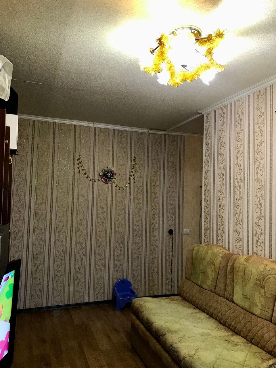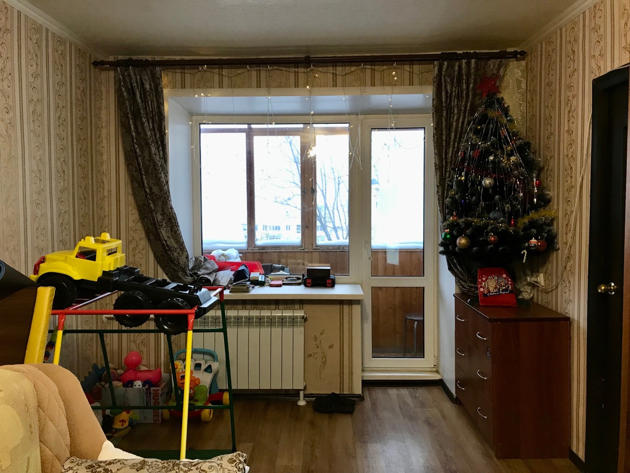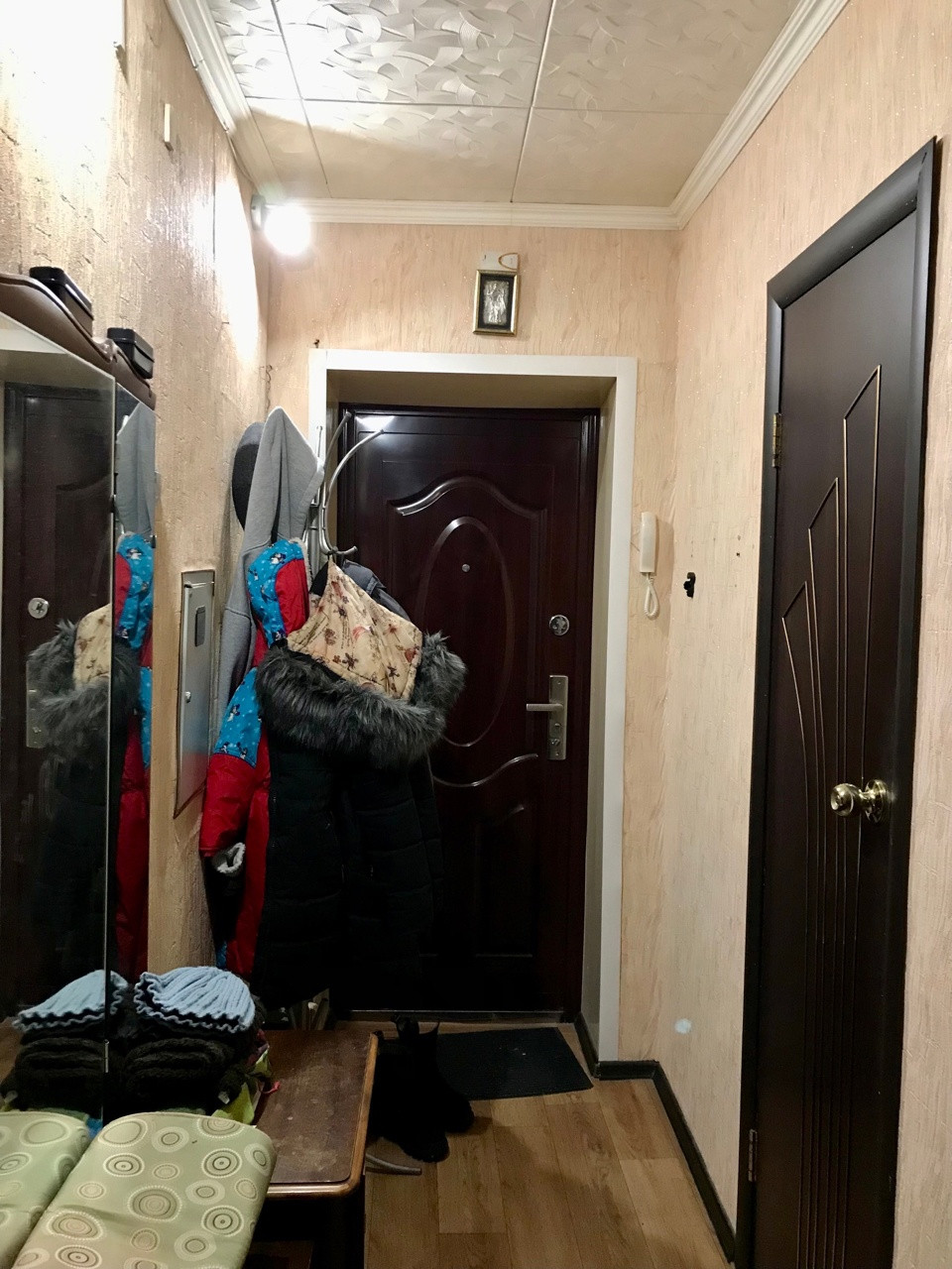 Состояние квартиры скромное, но чистое. Установлены стеклопакеты, полностью заменены трубы на пластиковые, счетчики на воду установили в прошлом году. Пол линолеум, частично поменяны батареи, межкомнатные двери и входные двери современного типа. В ванне плитка, в туалете пластиковые панели - все чистое и исправное. На кухне оставим шкафчики от кухонного гарнитура. В квартиру можно заехать и жить делая ремонт постепенно. А можно вынести все имеющееся и сделать для себя современную квартиру с большой кухне-гостиной и двумя спальнями.