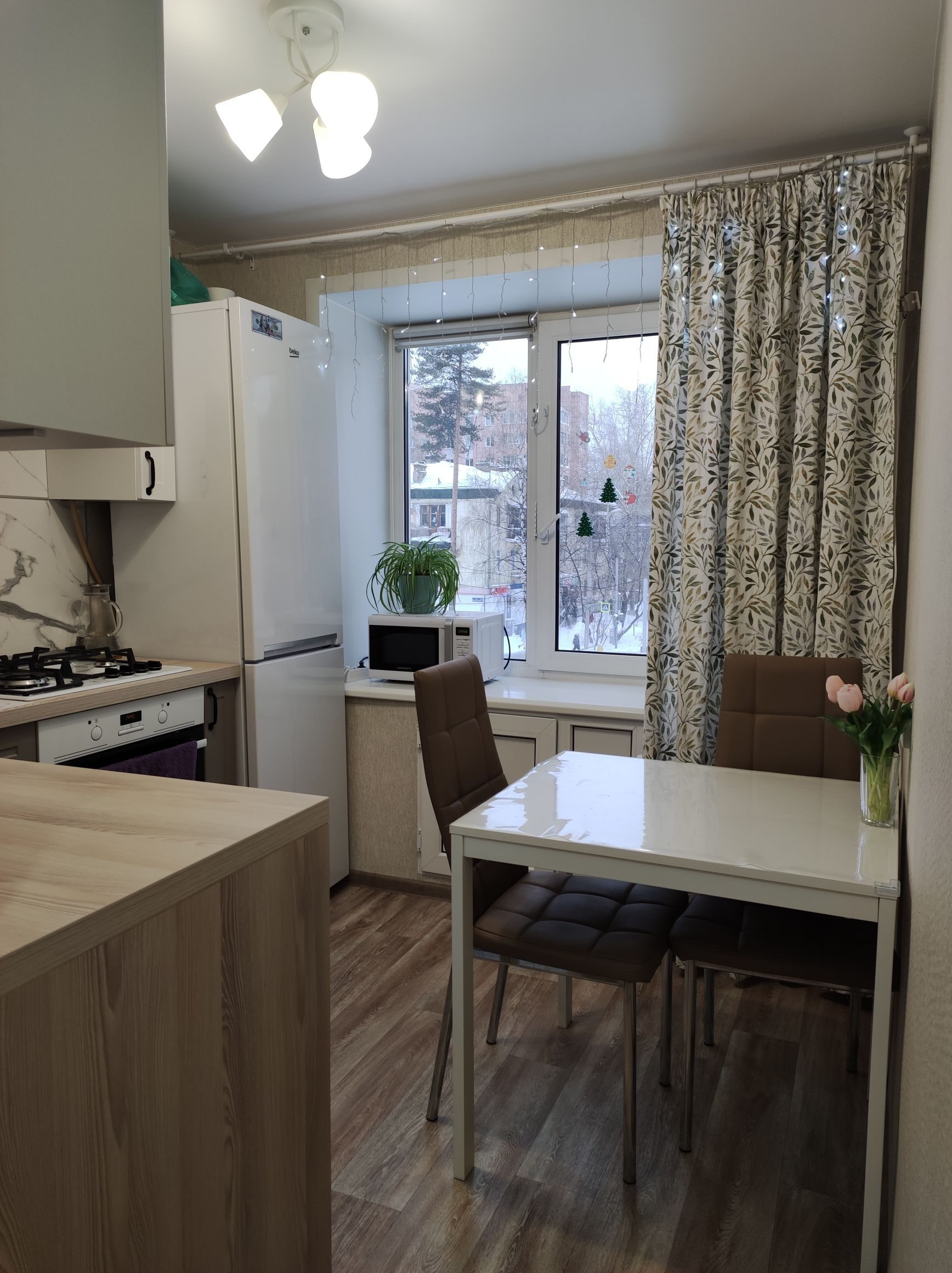 В квартире сделан капитальный ремонт , полностью заменена проводка, стояки водоснабжения и канализации. На окнах стеклопакеты. Балкон остеклен, выполнена внутренняя отделка. Натяжной потолок во всей квартире. Остаётся вместительный шкаф в прихожей.
