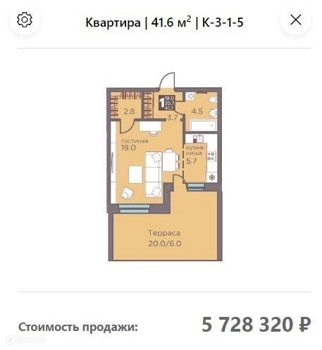Площадь кухни 5.7 м2