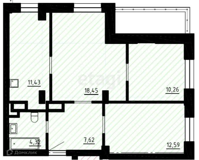 Общая площадь 64.67 м2