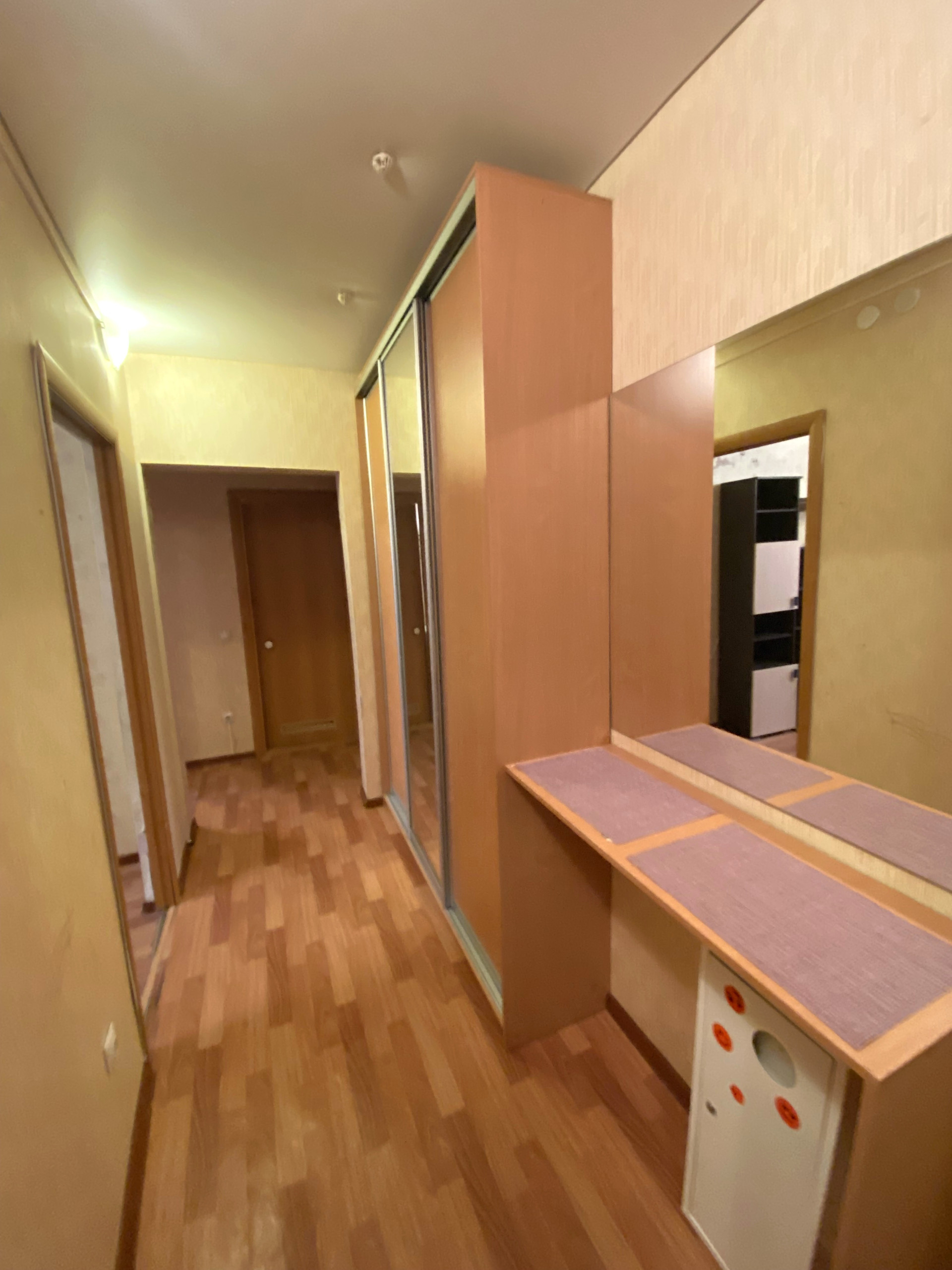 Вся мебель остается: кухонный гарнитур, шкафы в комнате, шкаф-купе в коридоре.