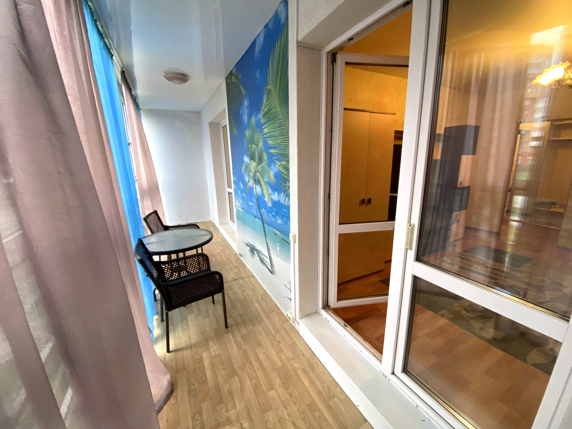 Большая лоджия вдоль всей квартиры с панорамным остеклением,