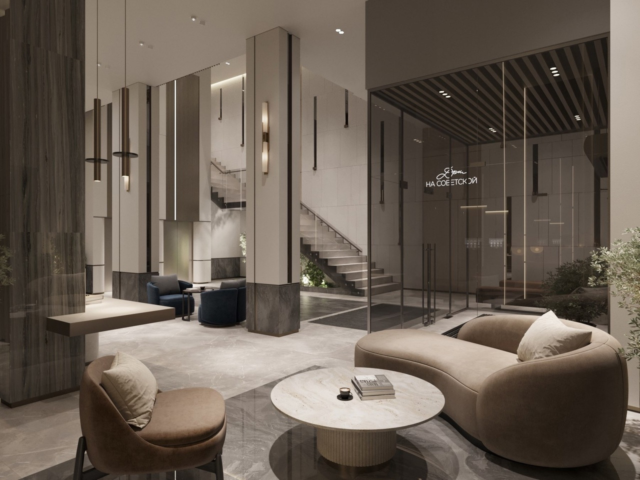 ✅ Центральная входная группа с уютной зоной ожидания, переговорной, лобби-баром и службой заботы