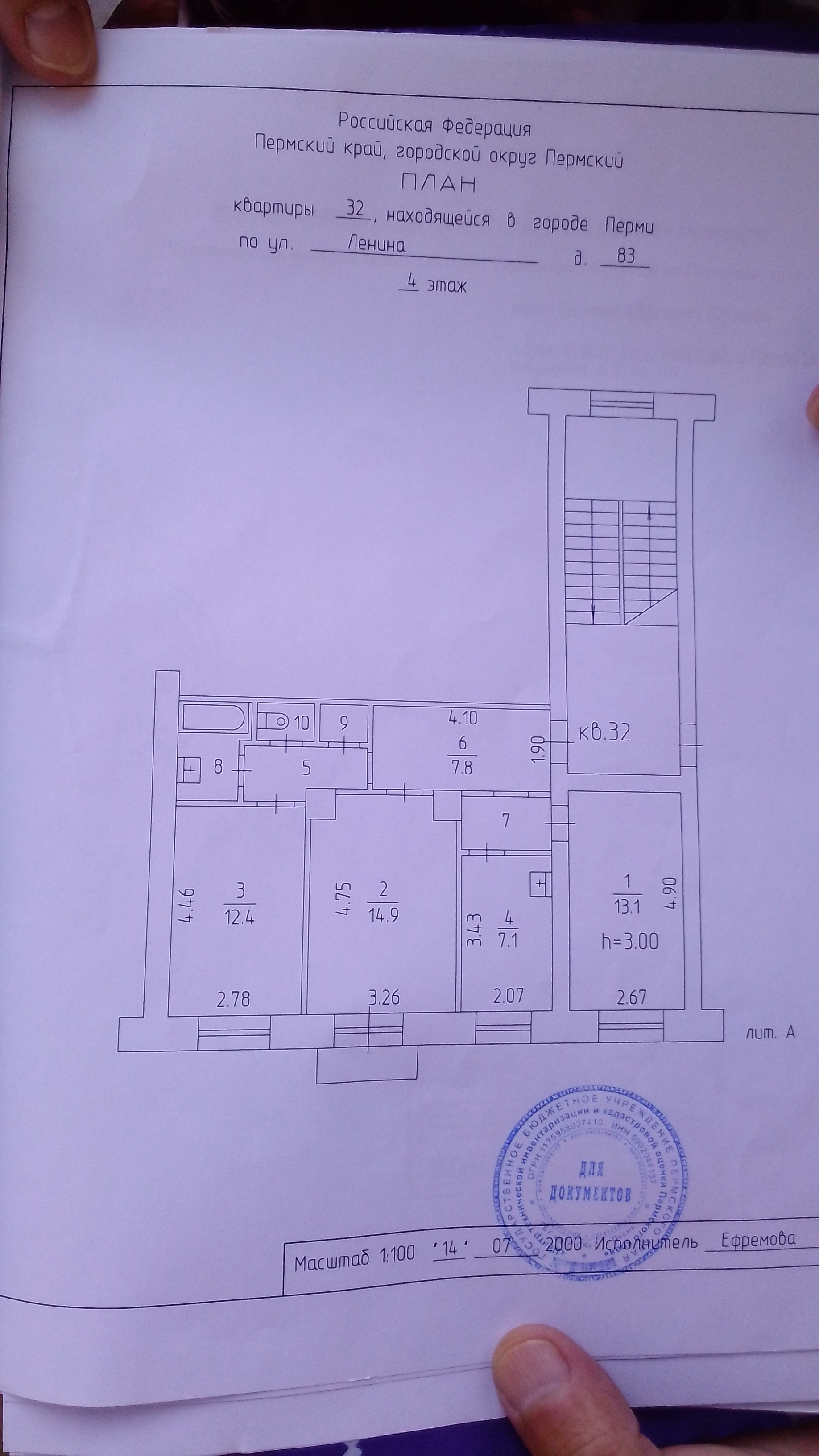 3-комнатная квартира, 66.4 м2, этаж 4 / 4, на продажу в Перми, улица Ленина, 83