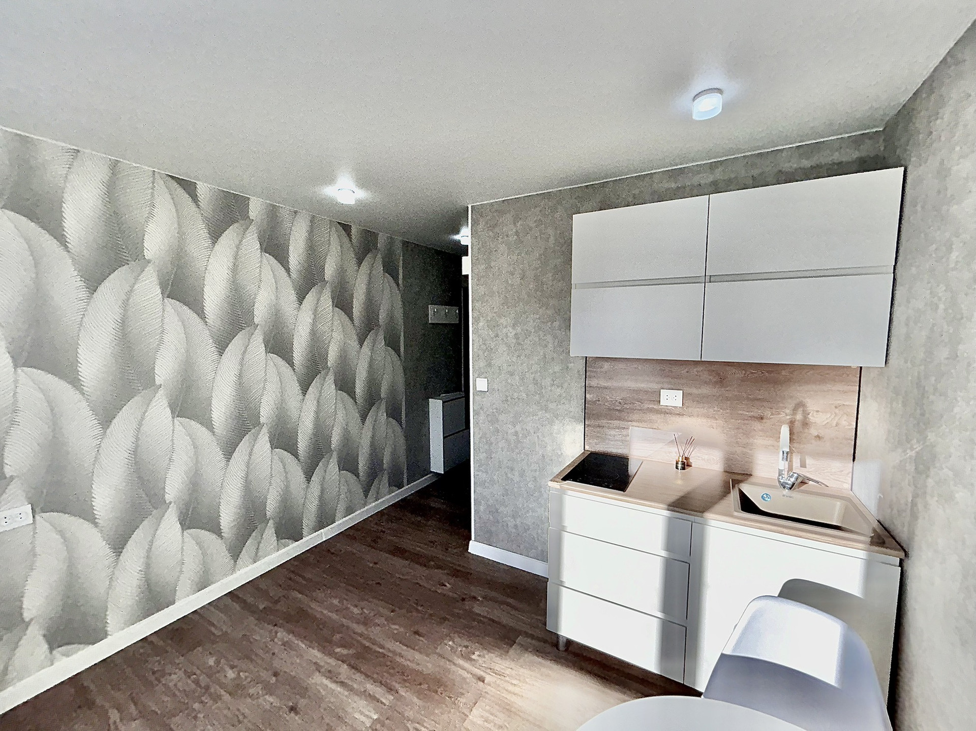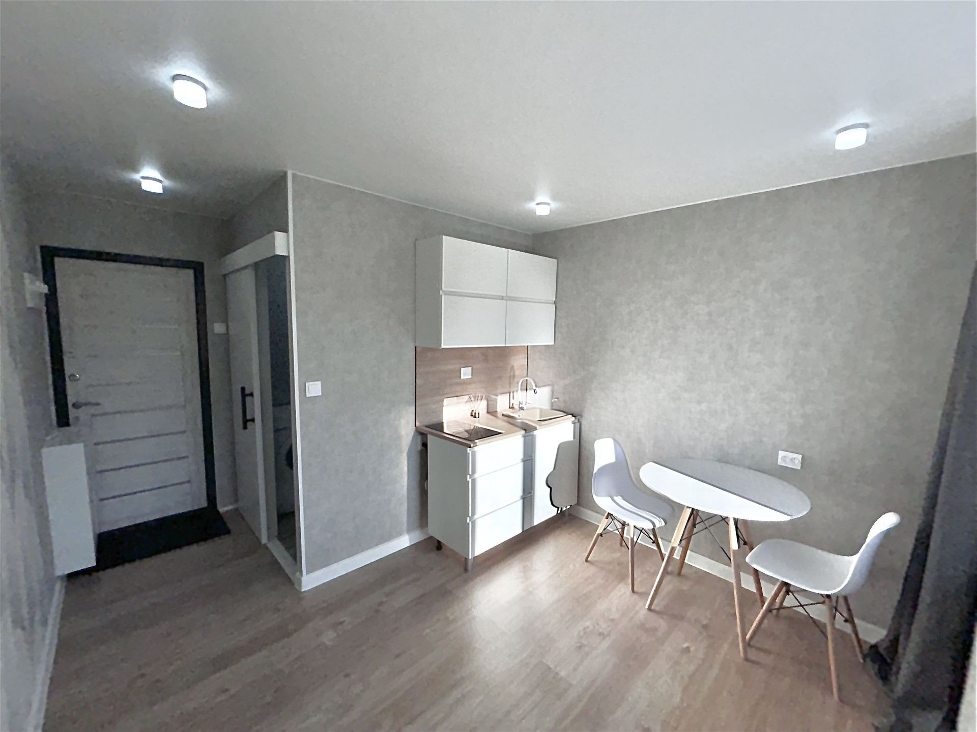 Заменена электропроводка во всей комнате, новые розетки и выключатели, линолеум, металлическая входная дверь, металлопластиковое окно, обеденная зона, эл. плита, натяжной потолок, установлены светодиодные лампы в комнате и санузле, организованно индивидуальное холодное и горячее водоснабжение, имеется свой санузел (ванна 1400 мм, унитаз), кухонный гарнитур длиной 1200 мм с мойкой.
