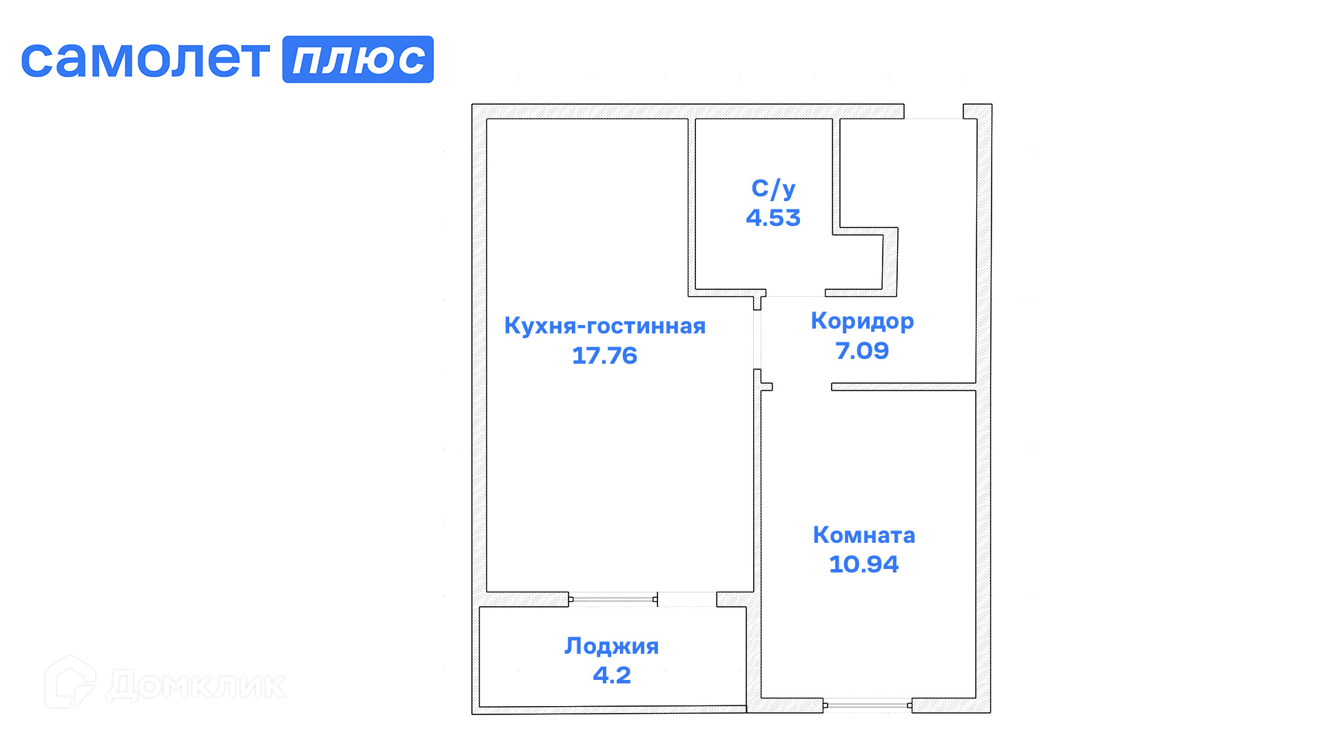 Общая площадь 42.4 м2