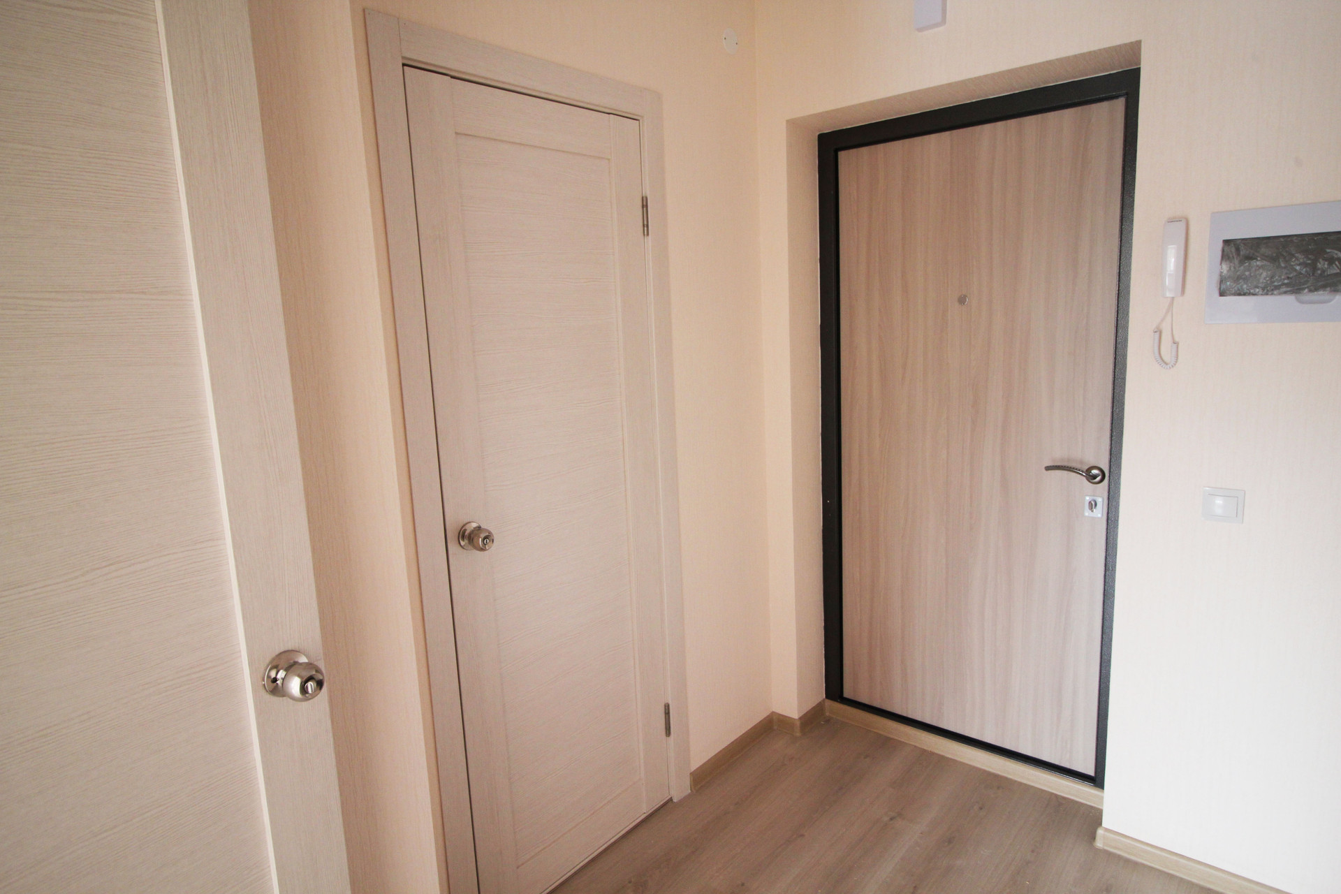 Входная металлическая дверь, ламинат , обои, натяжной потолок,межкомнатные двери, сантехника - все в отличном состоянии.