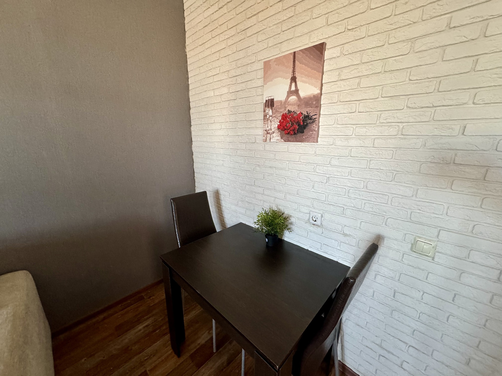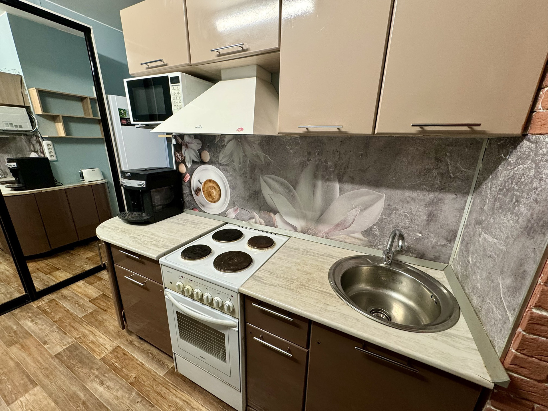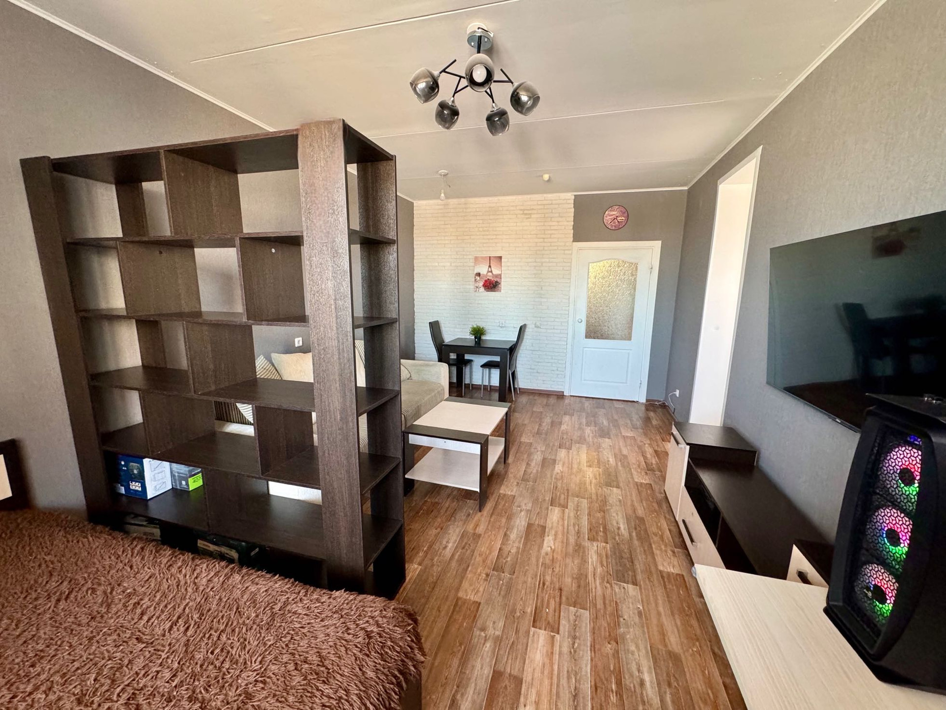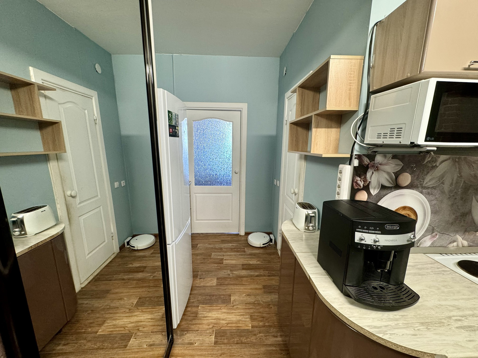 Ремонт и мебель. Квартира очень теплая! Мы уже вынесли кухонную зона для удобства, Вы спокойно сможете готовить, не беспокоясь о запахе в комнате! Мы оставим Вам практически всю мебель, а еще кондиционер, стиральную машину, небольшой водогрей и ощущение уюта! На балконе сделан ремонт, теперь там можно теплым летним вечером уютно посидеть!