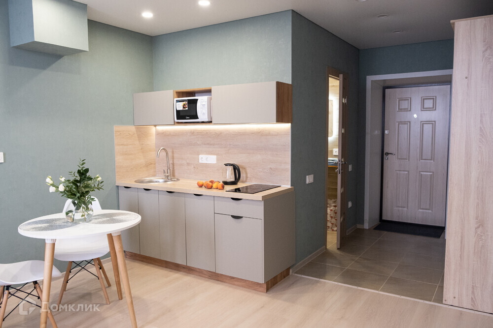 Апартаменты представляют из себя две самостоятельные студии, которые сдаются отдельно друг от друга. В каждой студии есть свой санузел, кухонная зона, зона спальни. Сделана свежая, современная отделка. Есть вся необходимая мебель и бытовая техника.