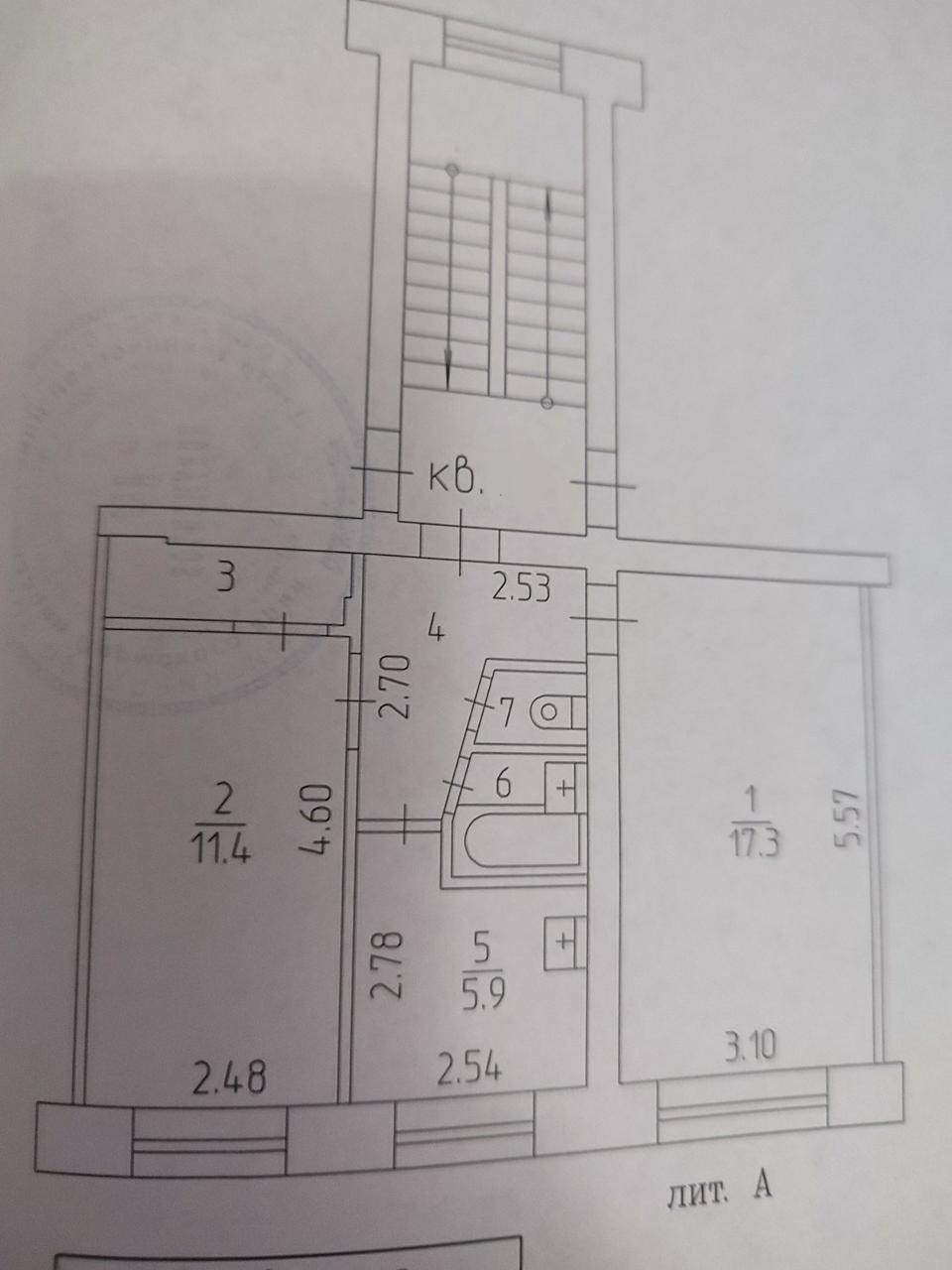 Общая площадь 43.9 м2