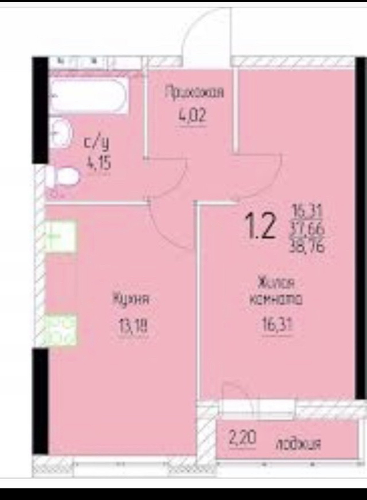 Общая площадь 37.1 м2