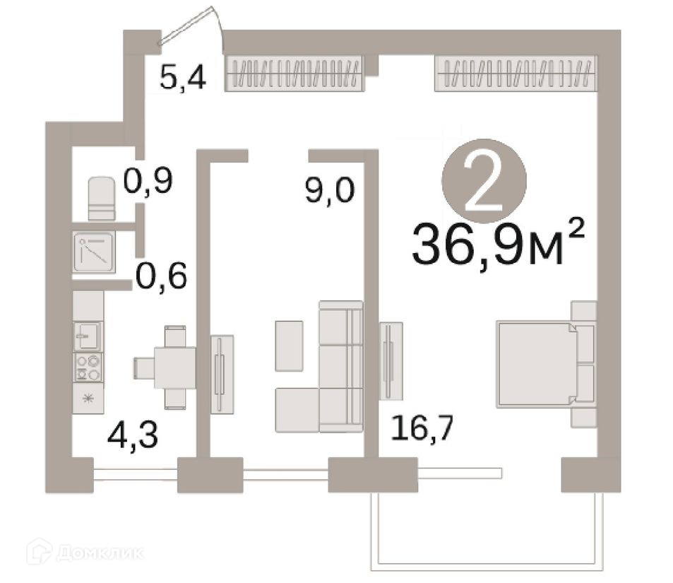 Общая площадь 36.9 м2