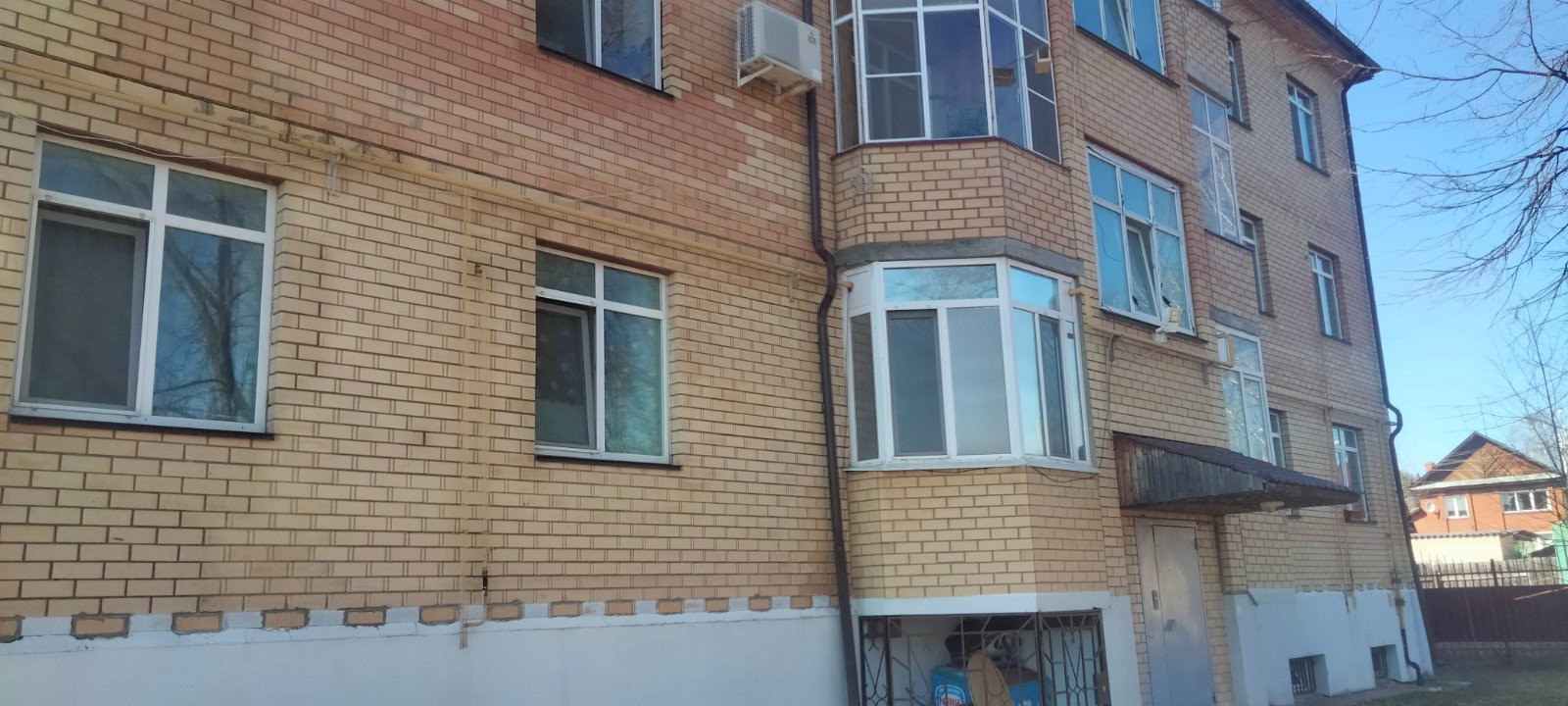 1 этаж (окна высоко), имеется цокольный этаж, балкон