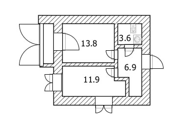 Жилая площадь 11.9 м2