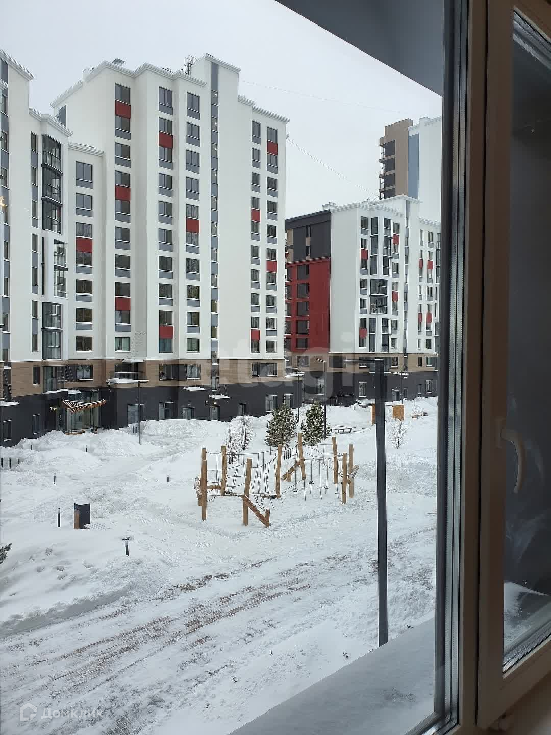Окна выходят во двор. Во дворе детская площадка с различными тренажерами. Красивые деревья и кустарники.
