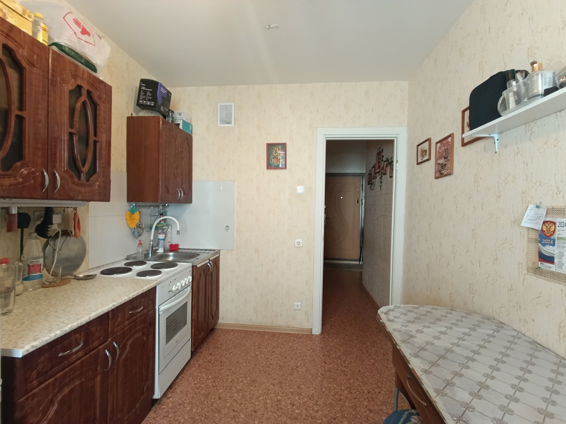 Общая площадь квартиры - 38,1 м2 (без учета лоджии). Комната 16.4 м2.Кухня - 8,6 м2, коридор - 6,2 м2 + 3 кв.м вместительный гардероб.