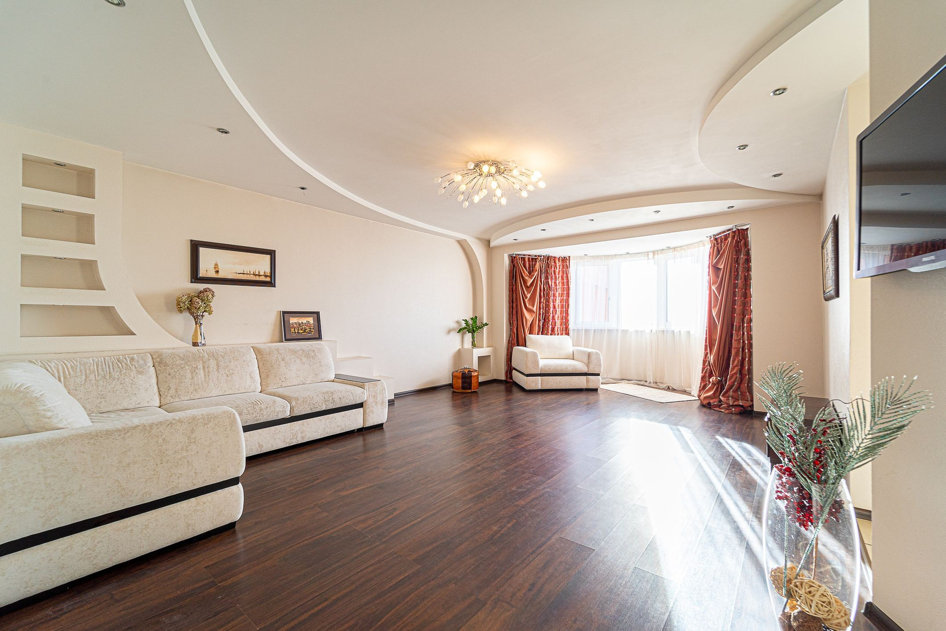 Просторная уютная квартира в кирпичном доме с ремонтом, кухня 16,9 кв.м. с отдельной обеденной зоной, встроенный кухонный гарнитур,  гостиная 33,8 кв.м, просторная прихожая 7,6 кв.м. с вместительным шкафом купе, спальня 15,5 кв.м. с выходом на балкон, сан узел 6,7 кв.м. Закрытая , охраняемая территория дома с детской площадкой. Имеется два машиноместа. Один взрослый собственник.  Долгов, обременений нет.